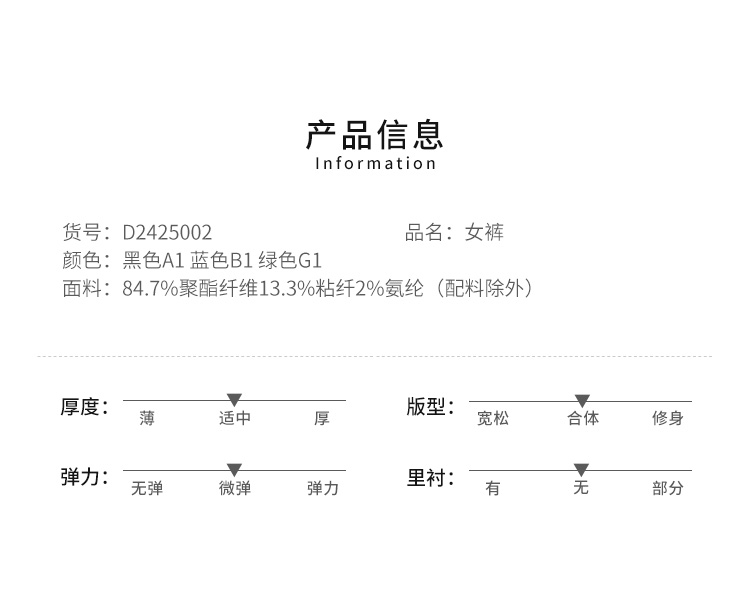 VIVIAN LIU薇薇安刘D2425002春女装新款斜插兜显瘦微喇休闲长裤