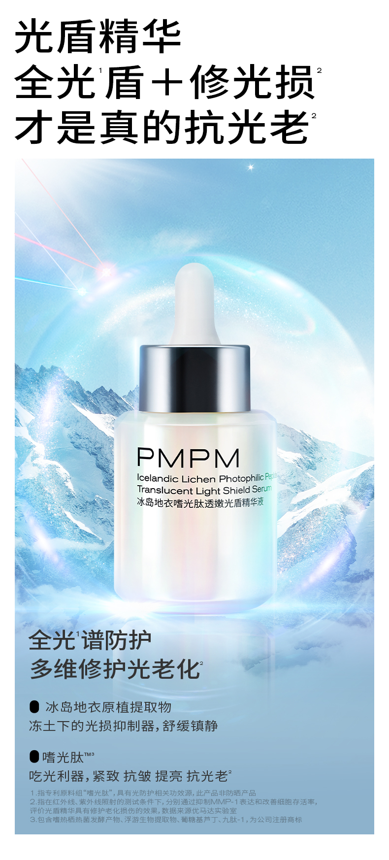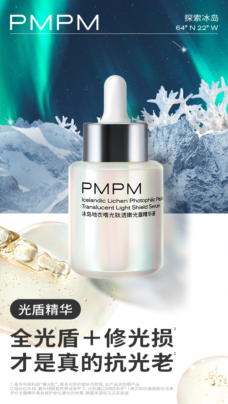 PMPM光盾精华液抗光老修护提亮日防夜修舒缓屏障促胶原抗光损精华
