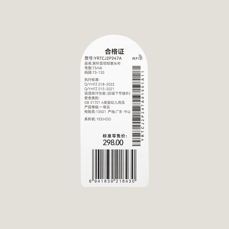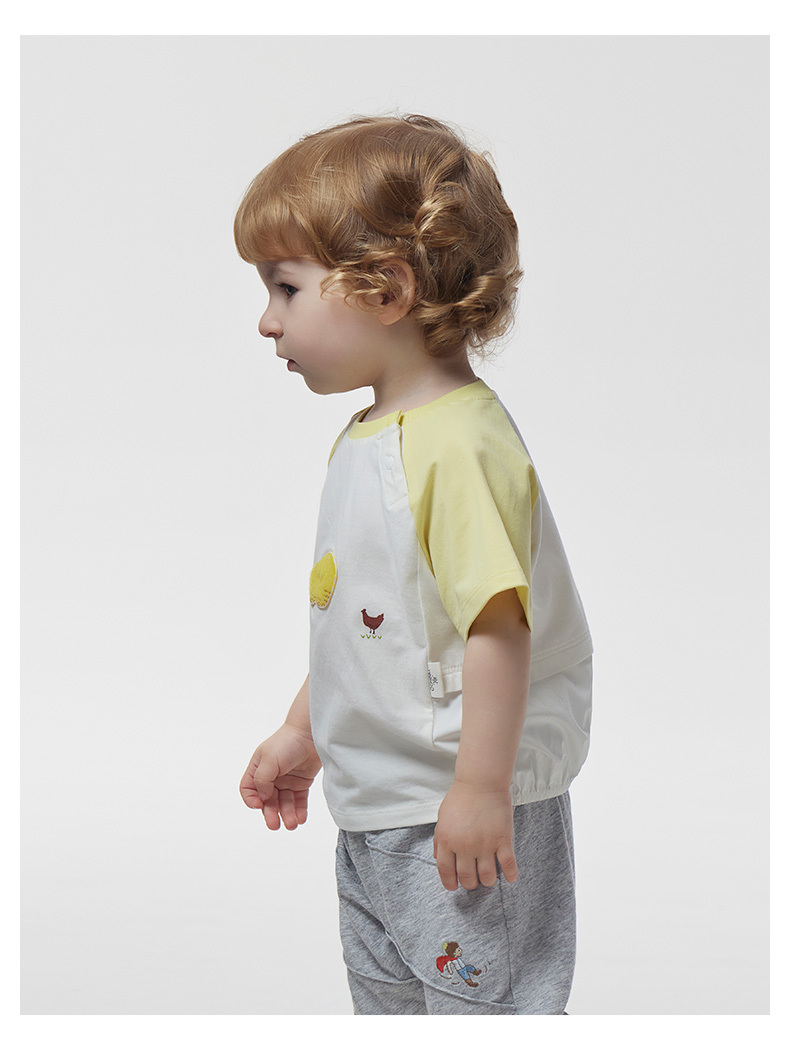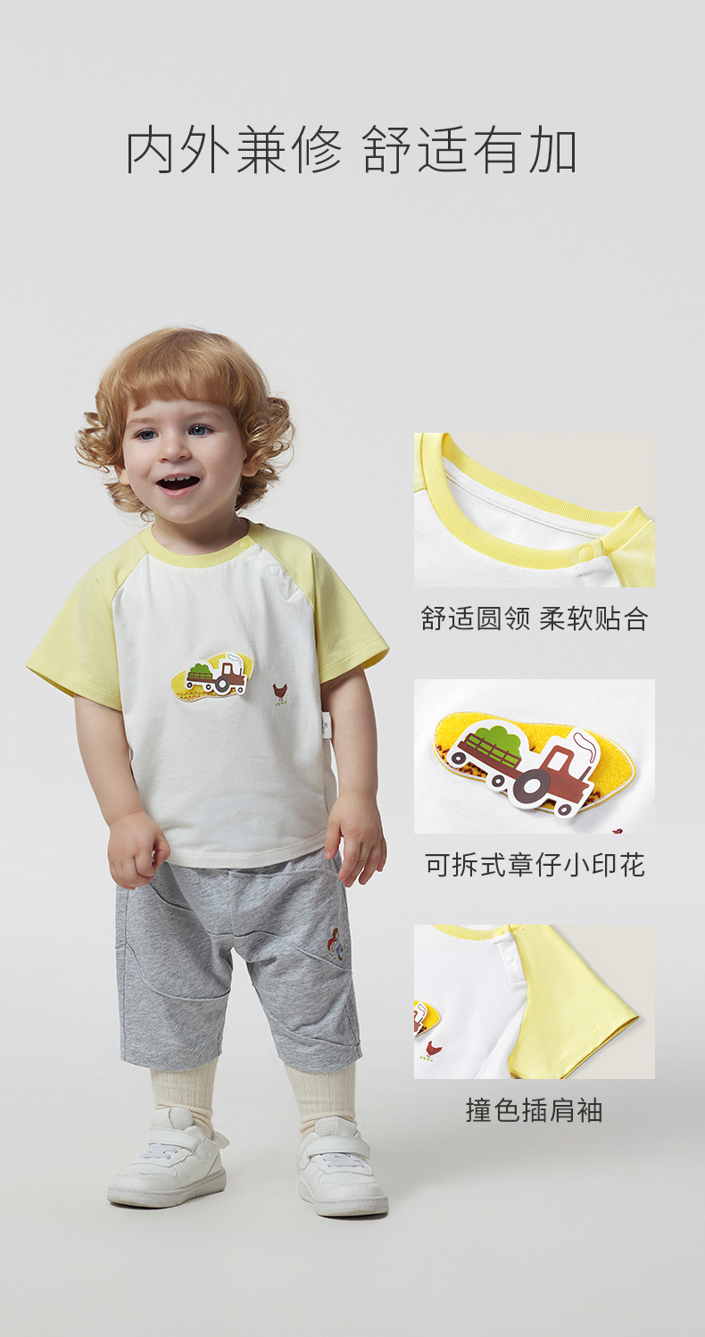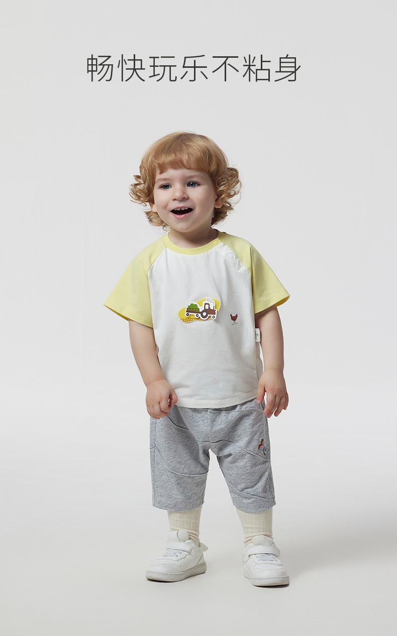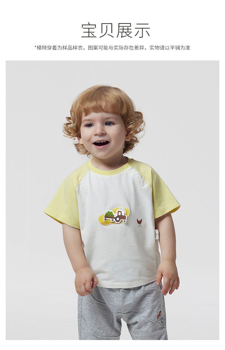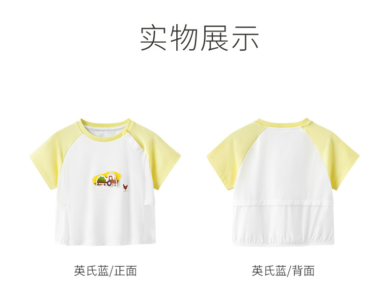 英氏儿童T恤上衣23夏季新款男女宝圆领短袖薄款打底衫YRTCJ2P247A