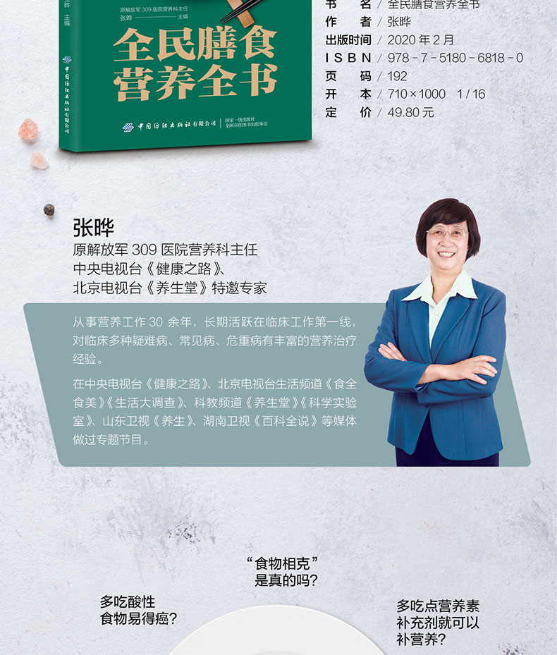 2020新书 全民膳食营养全书 张晔 家庭成人儿童健康饮食营养均衡科学合理搭配菜食谱大全 抗癌防癌常见病食疗药膳配方烹饪技巧详讲