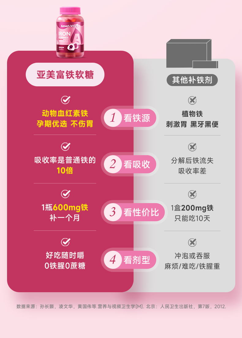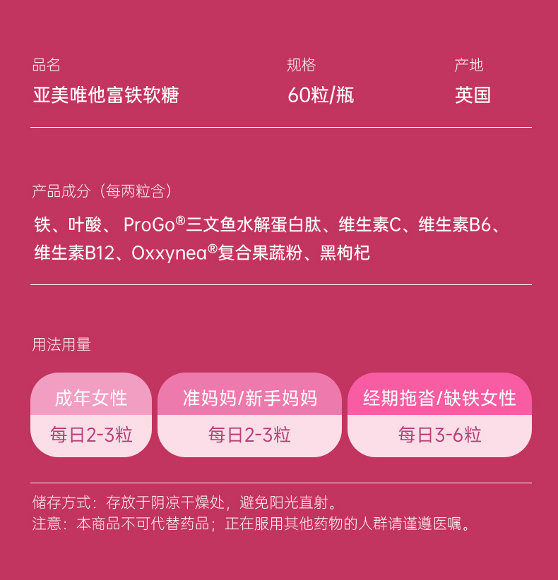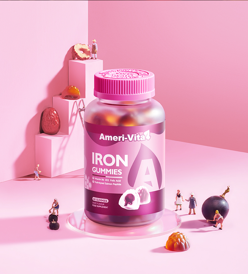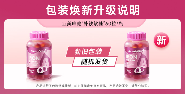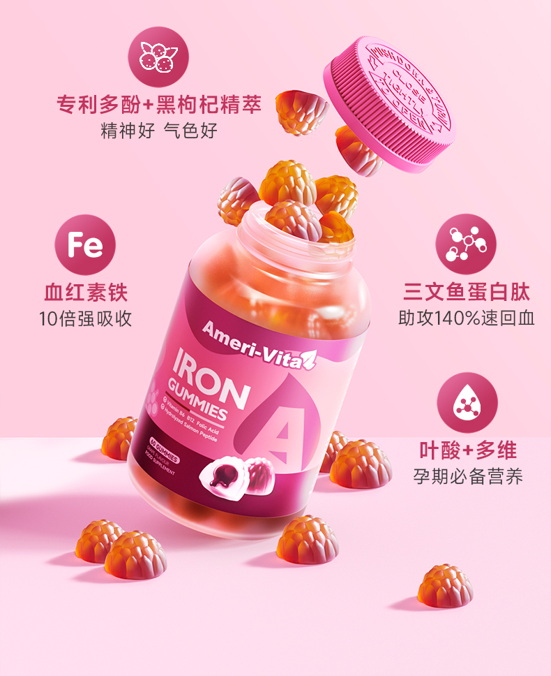 Ameri-Vita 补铁软糖 60粒/瓶 女性儿童孕妇孕期贫血补铁剂(葡萄味)