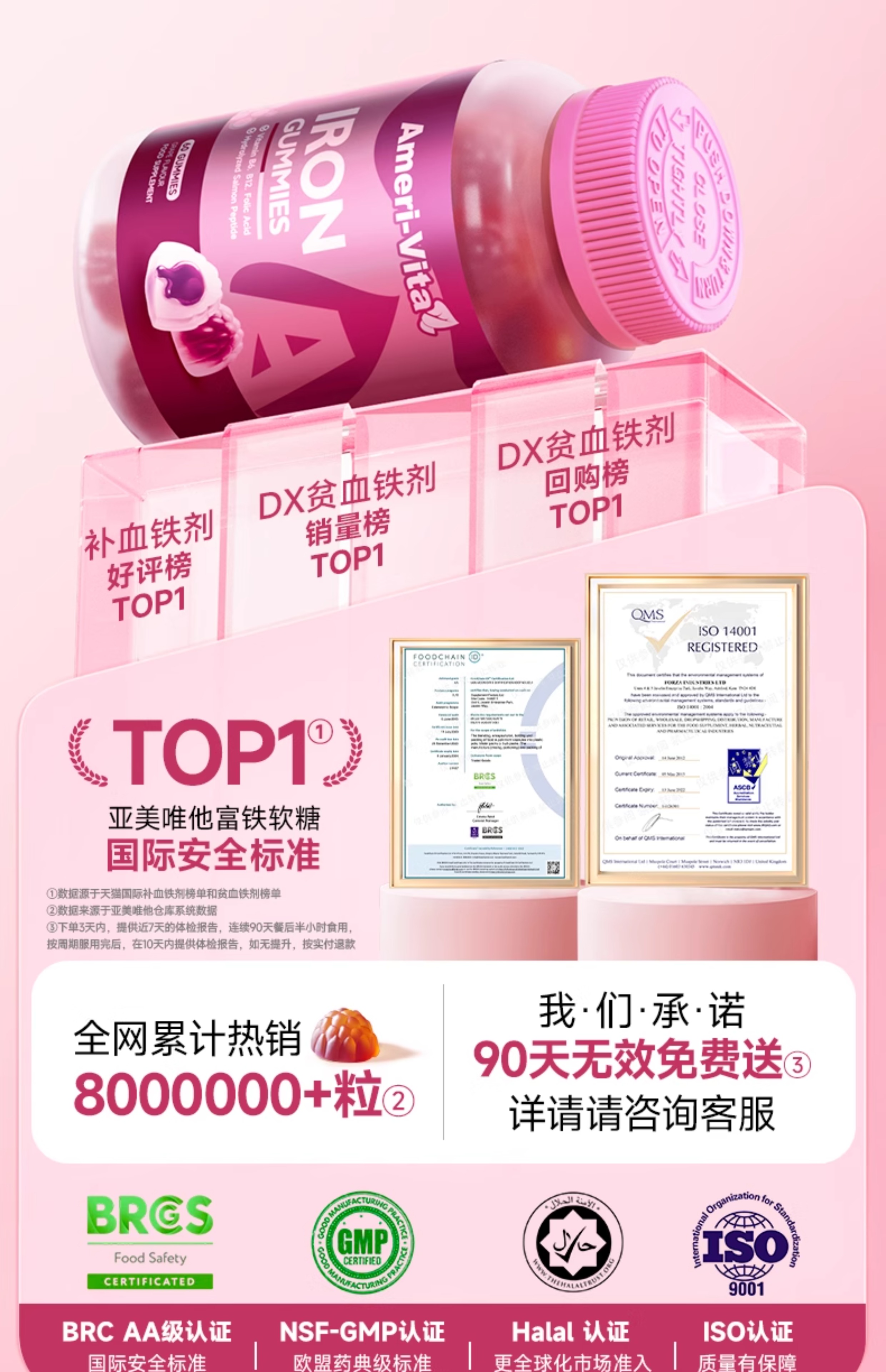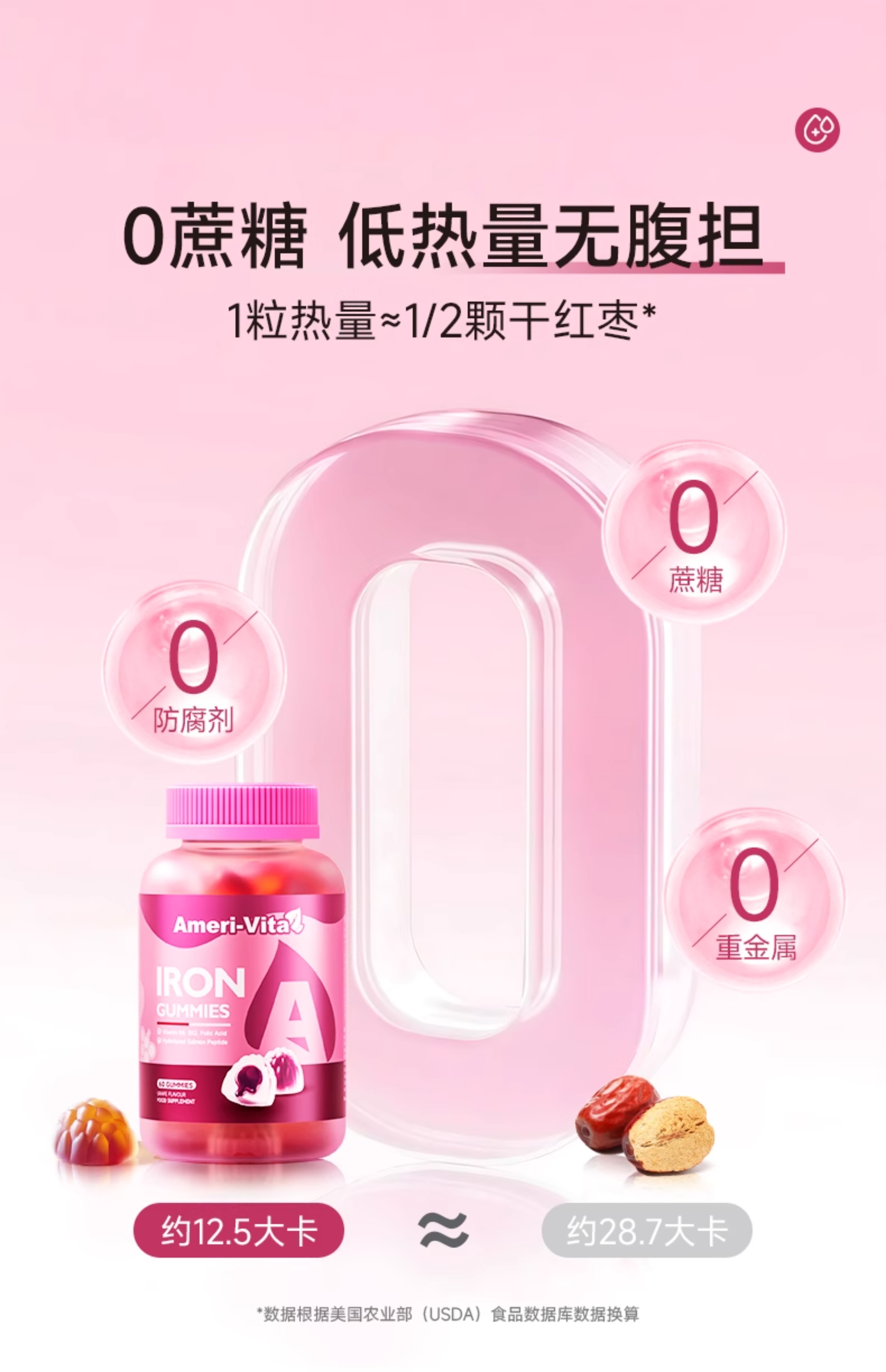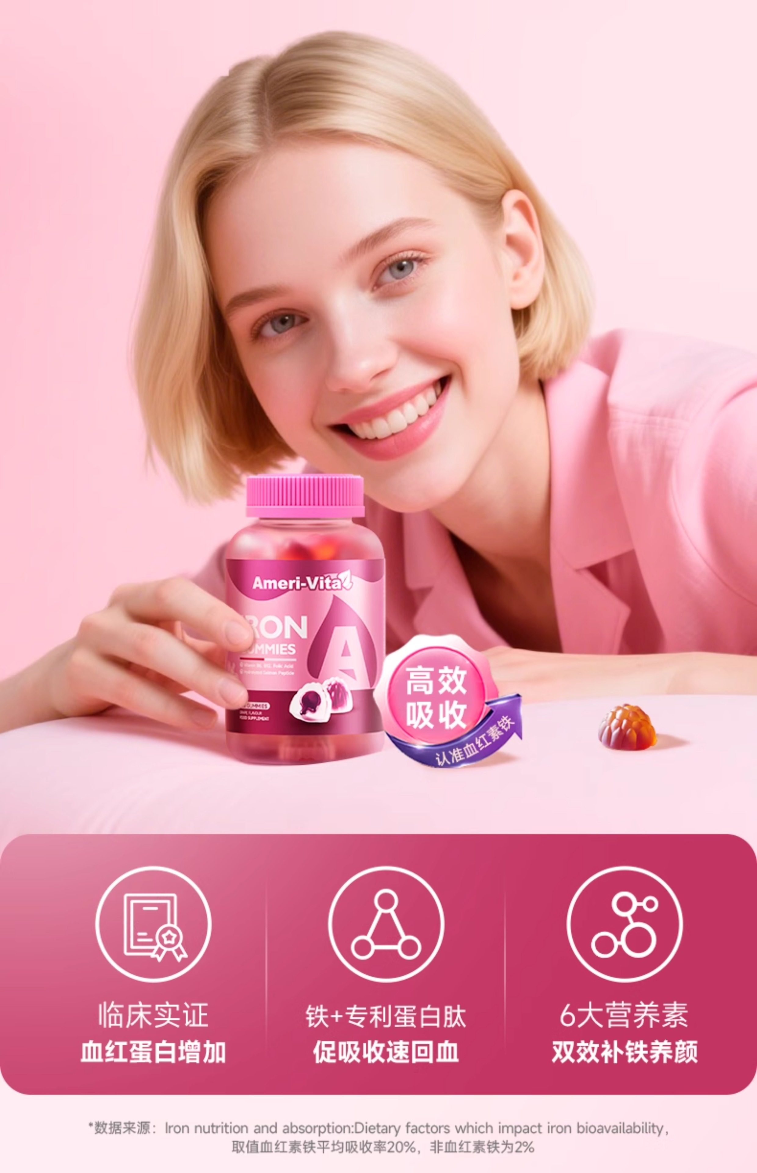 Ameri-Vita 补铁软糖 60粒/瓶 女性儿童孕妇孕期贫血补铁剂(葡萄味)