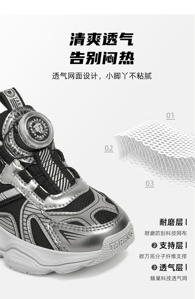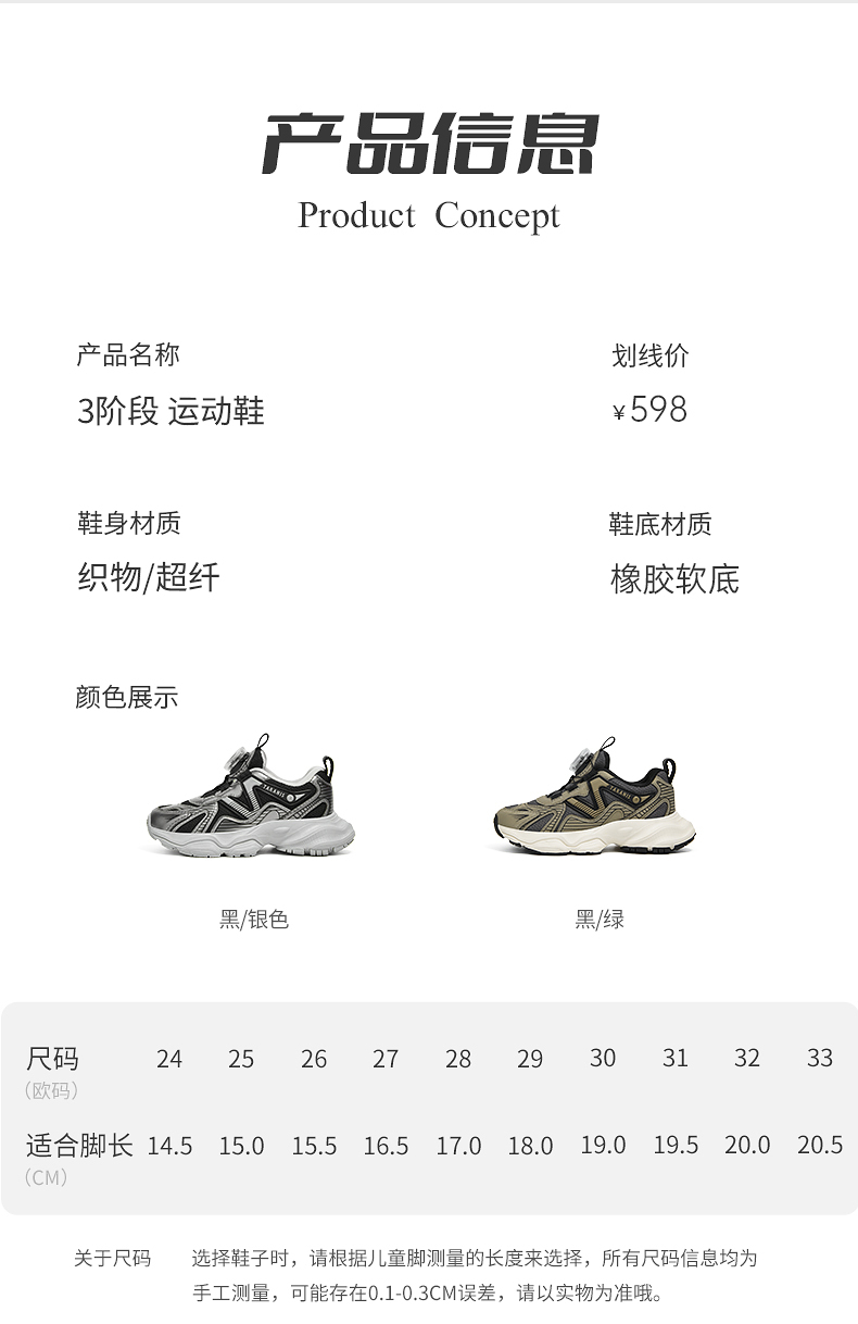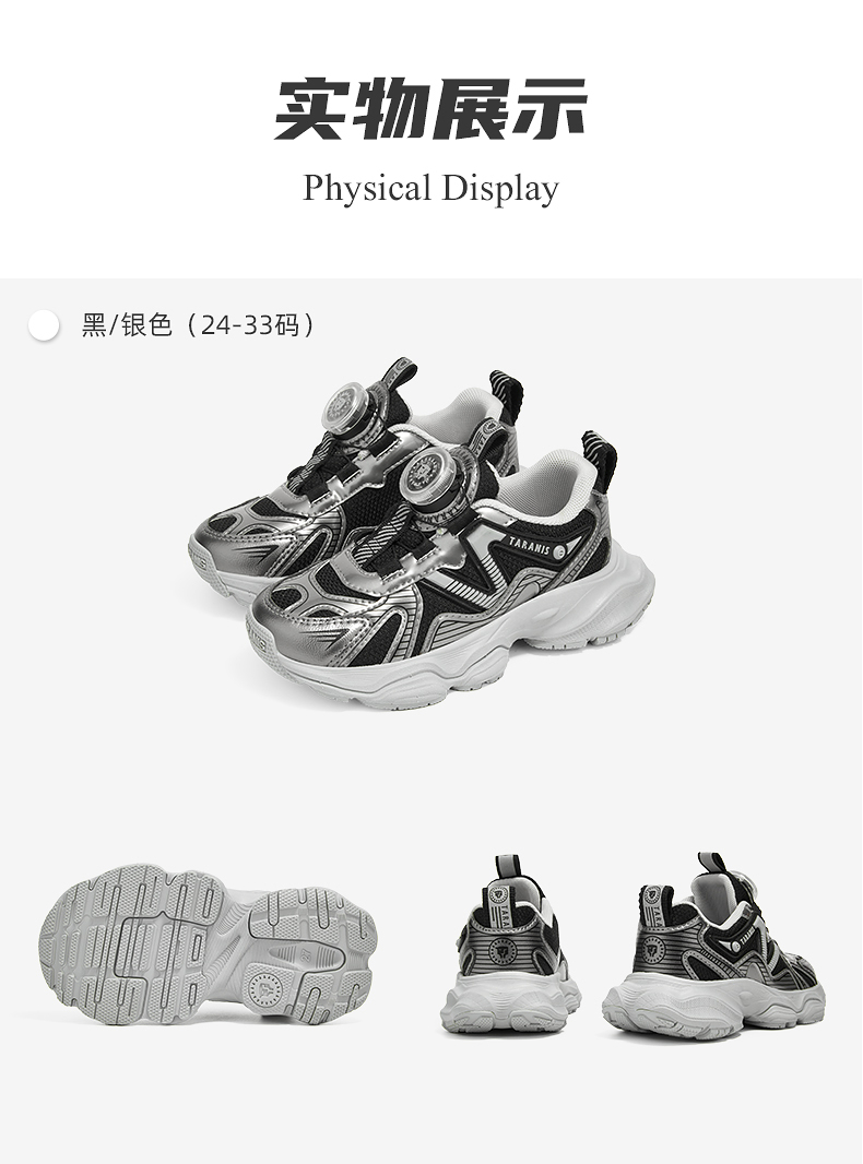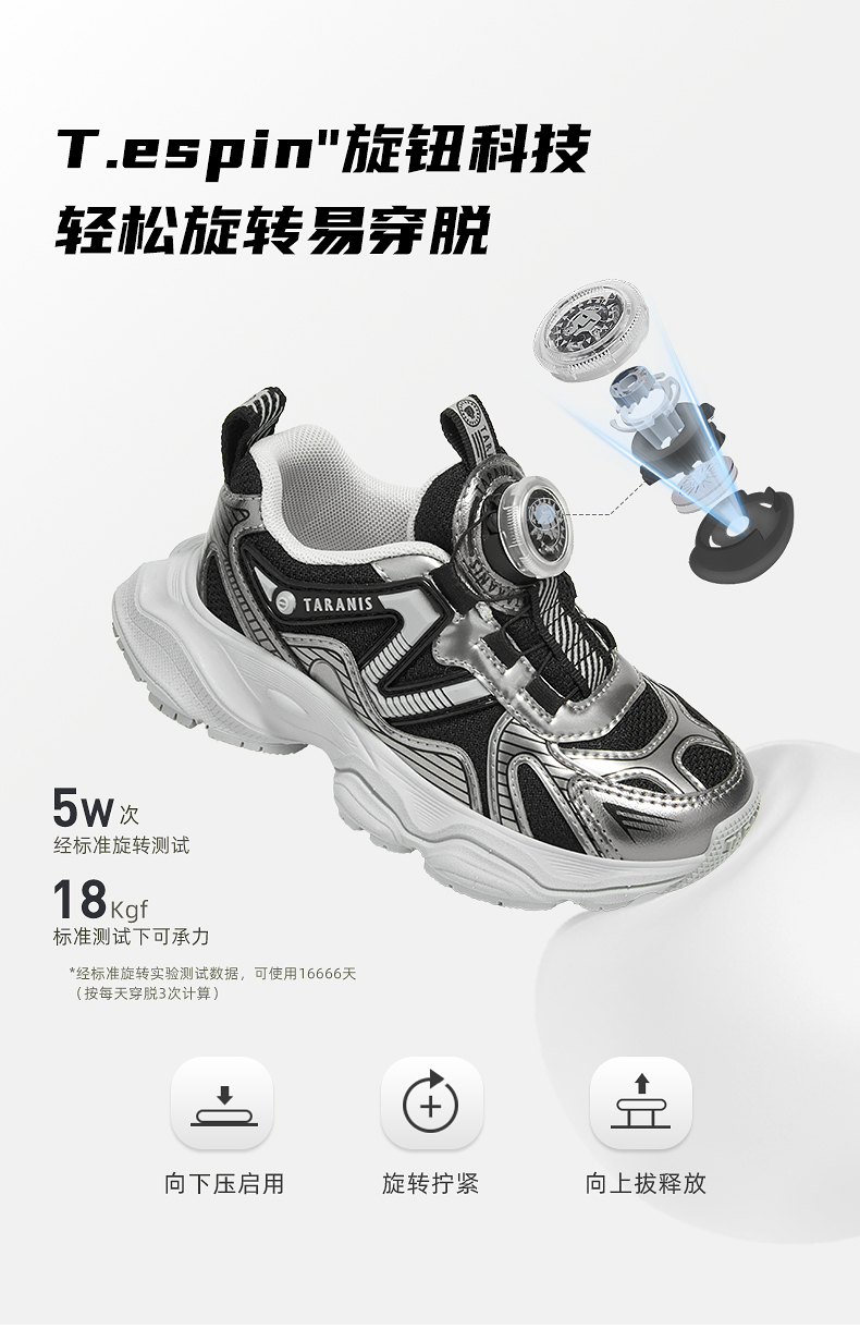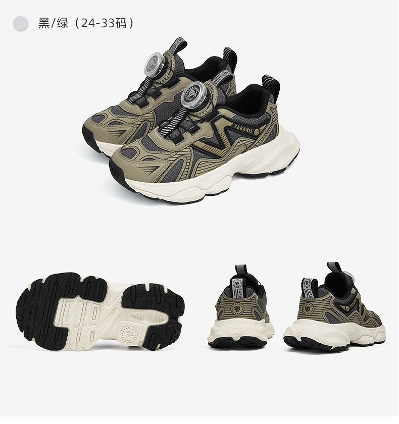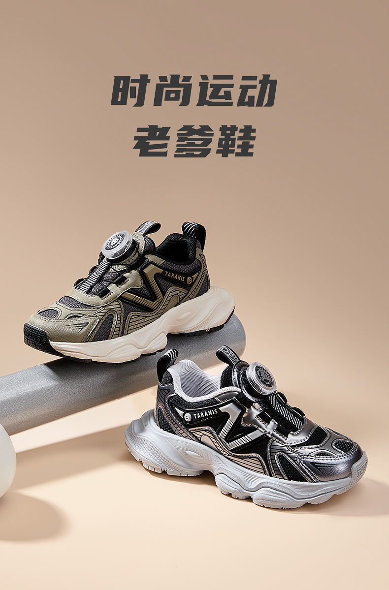 泰兰尼斯童鞋2025秋季新款儿童运动鞋缓震男童休闲旋钮扣老爹鞋子 T01X5C6750