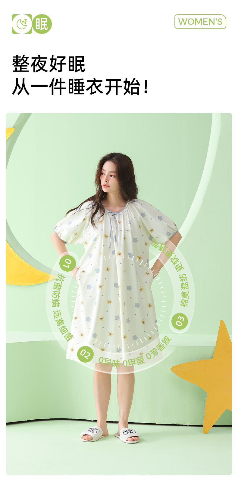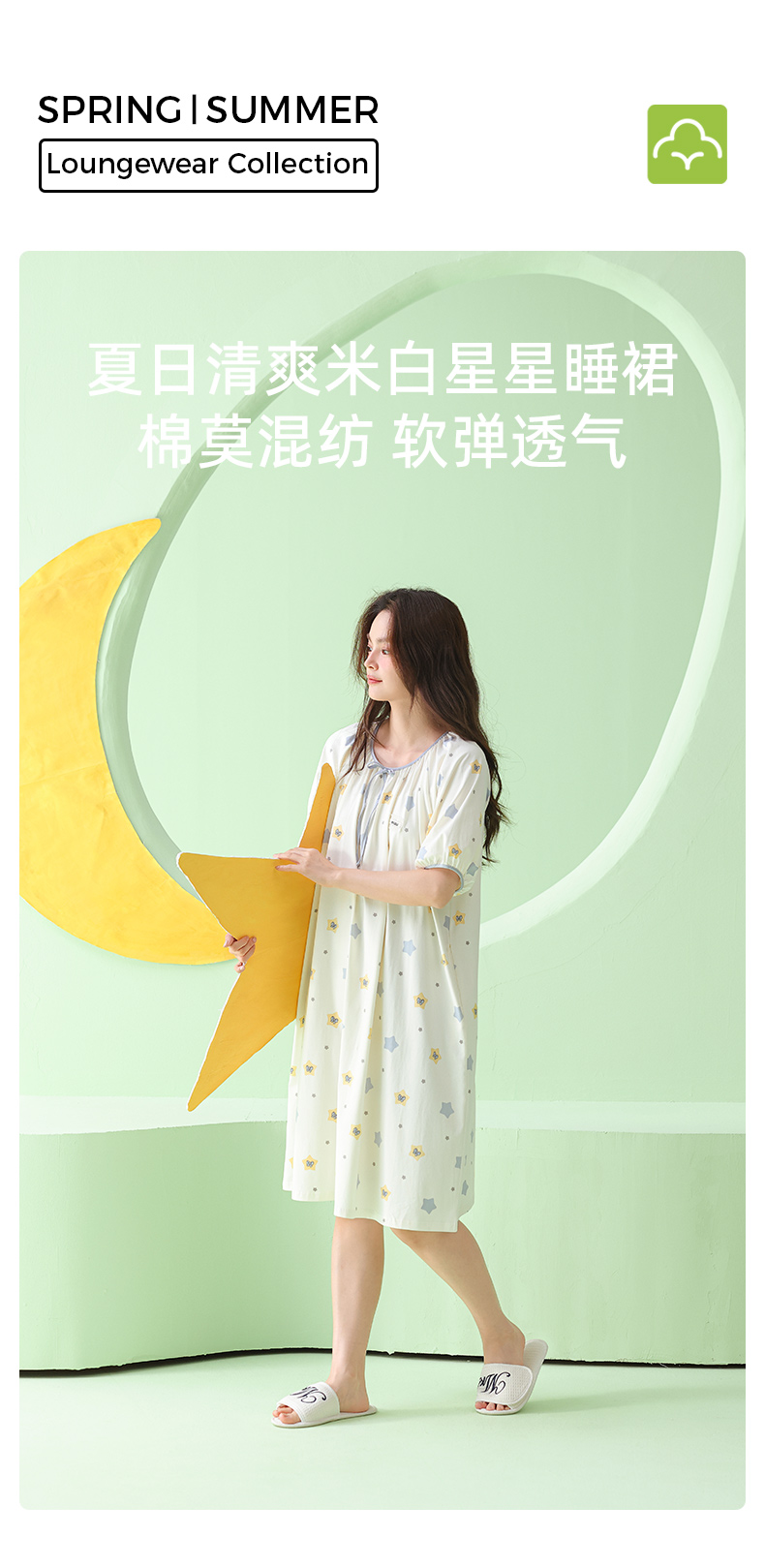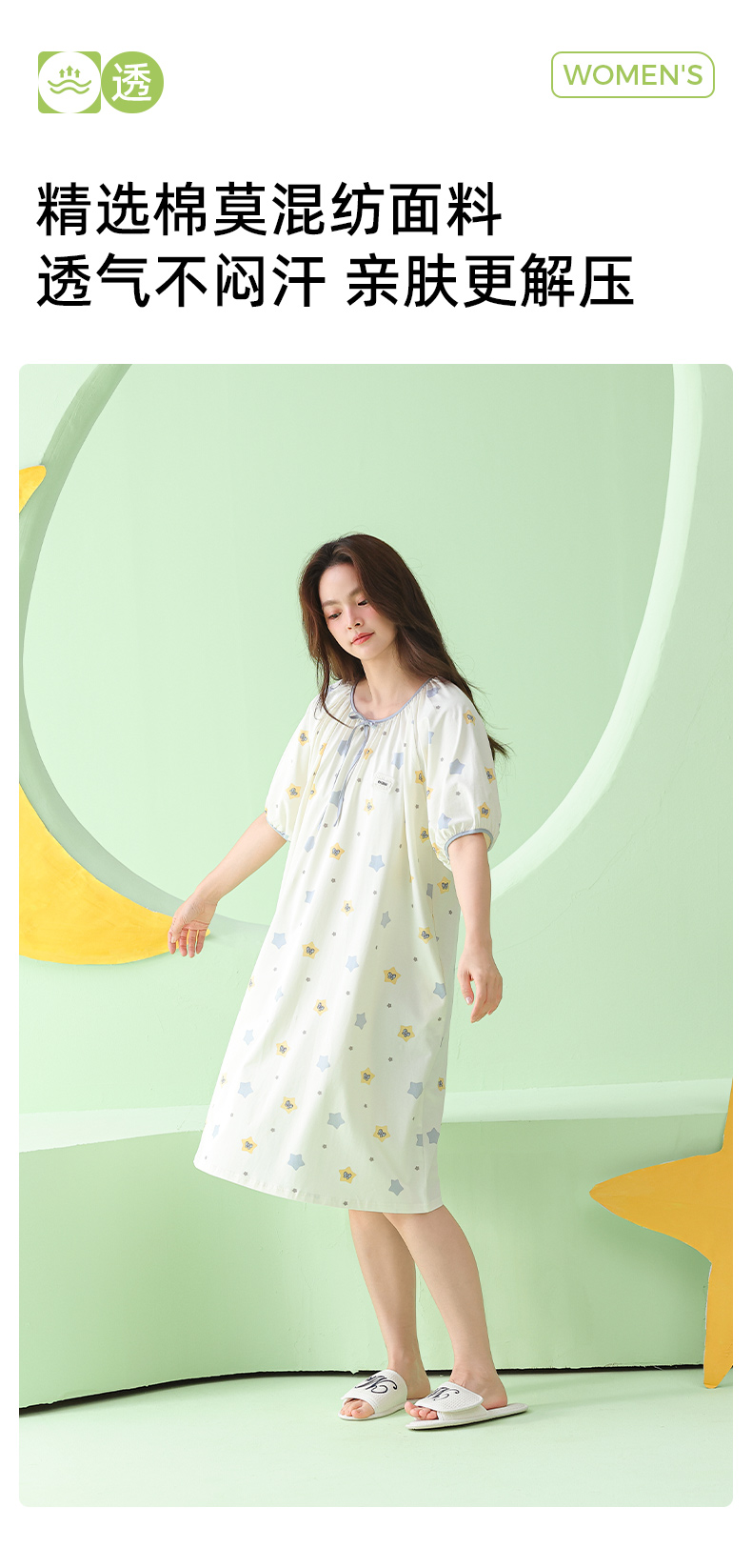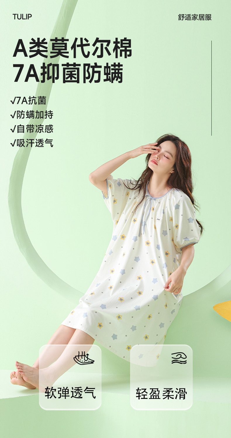 【直降47.7】莫代尔舒适睡裙(星星)