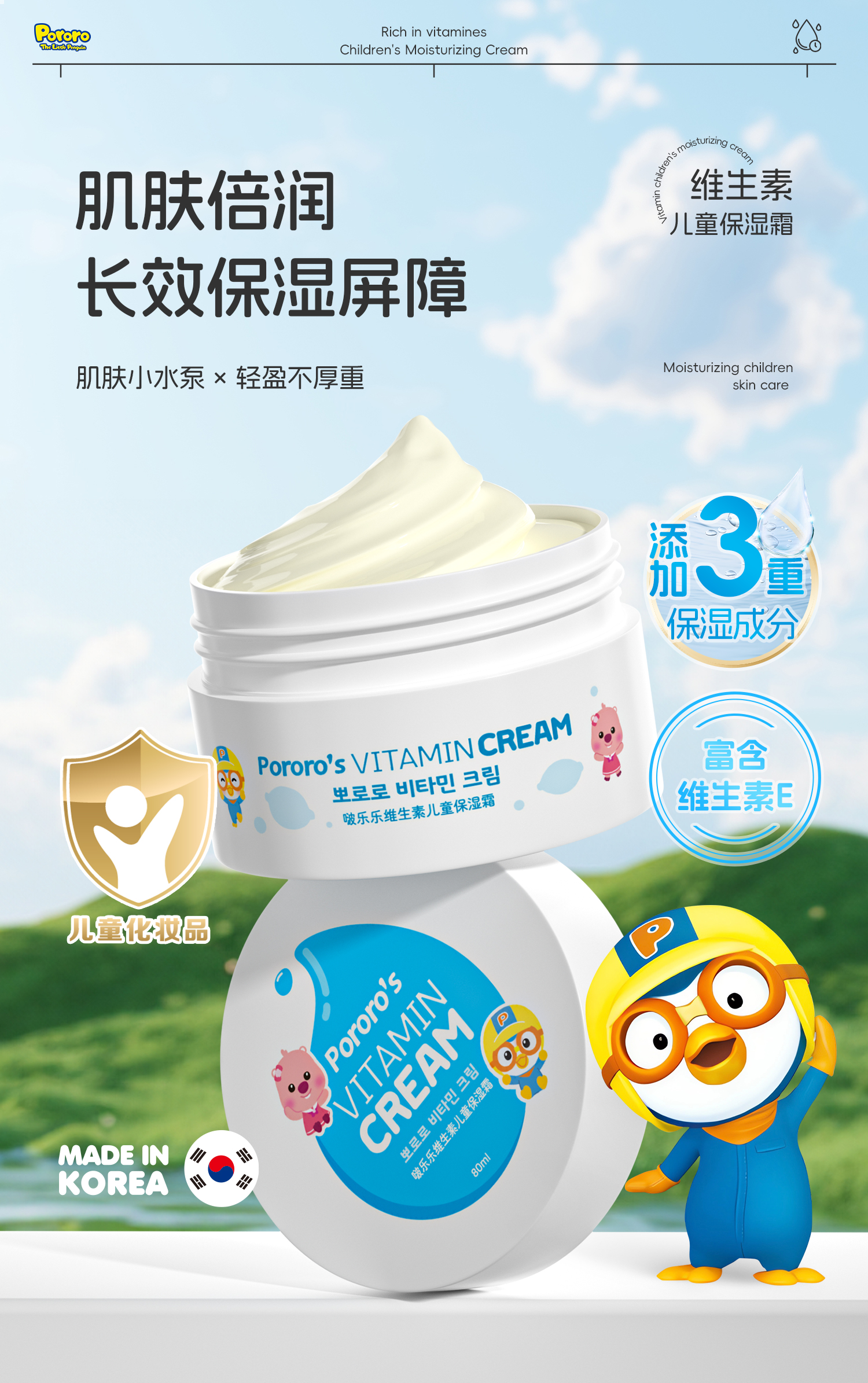 韩国啵乐乐维生素儿童保湿霜80ml/118001 易推开好吸收不粘腻