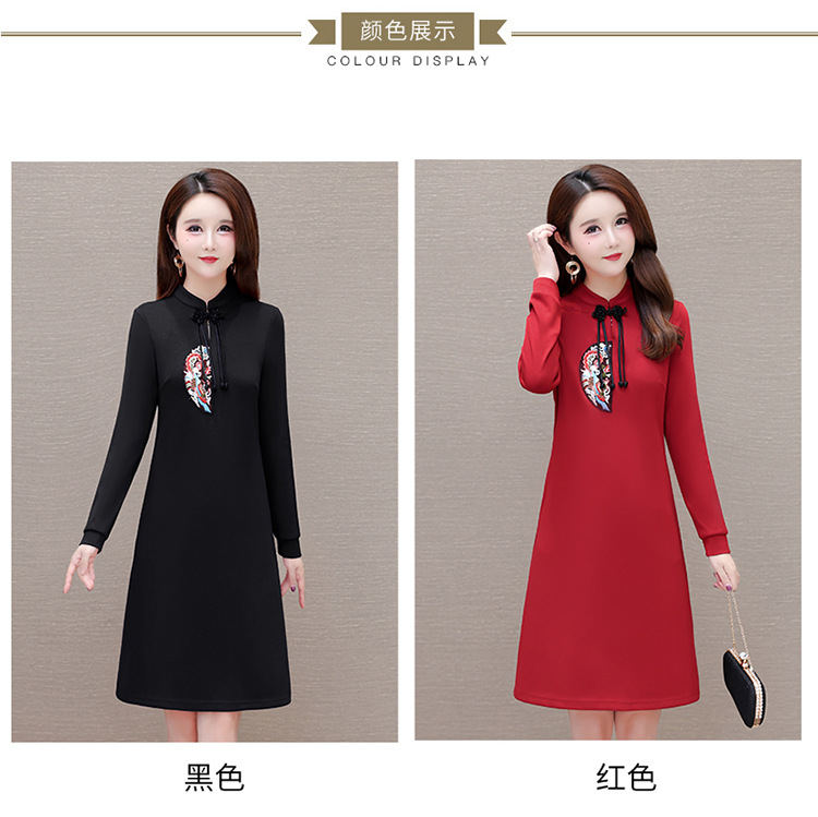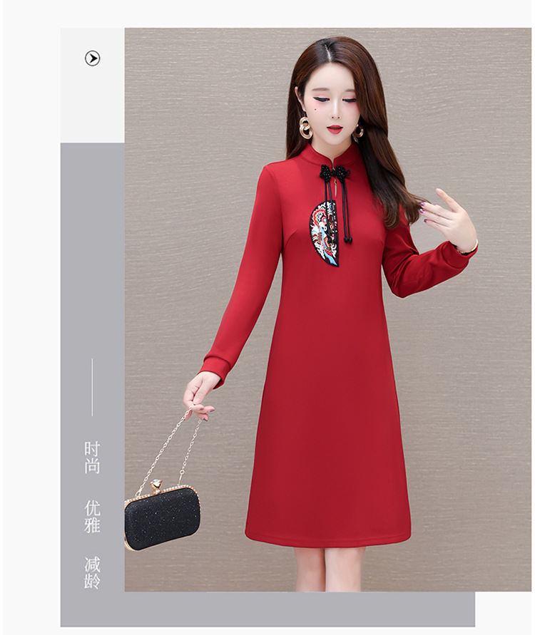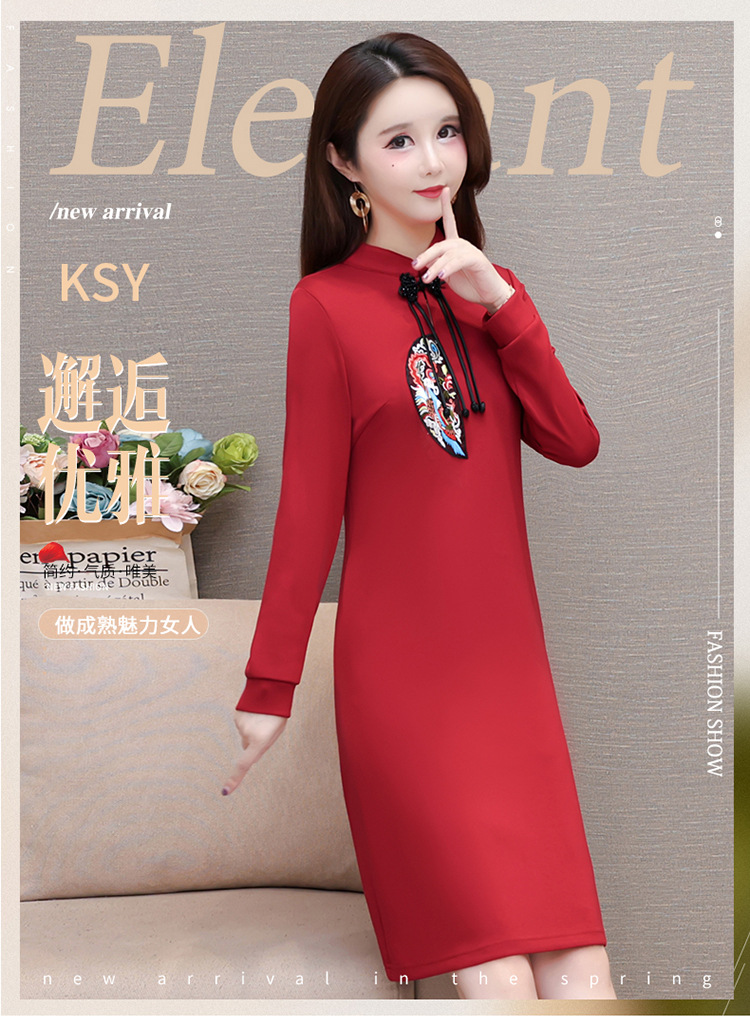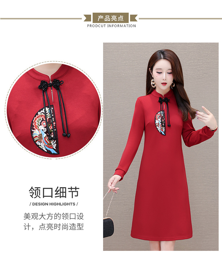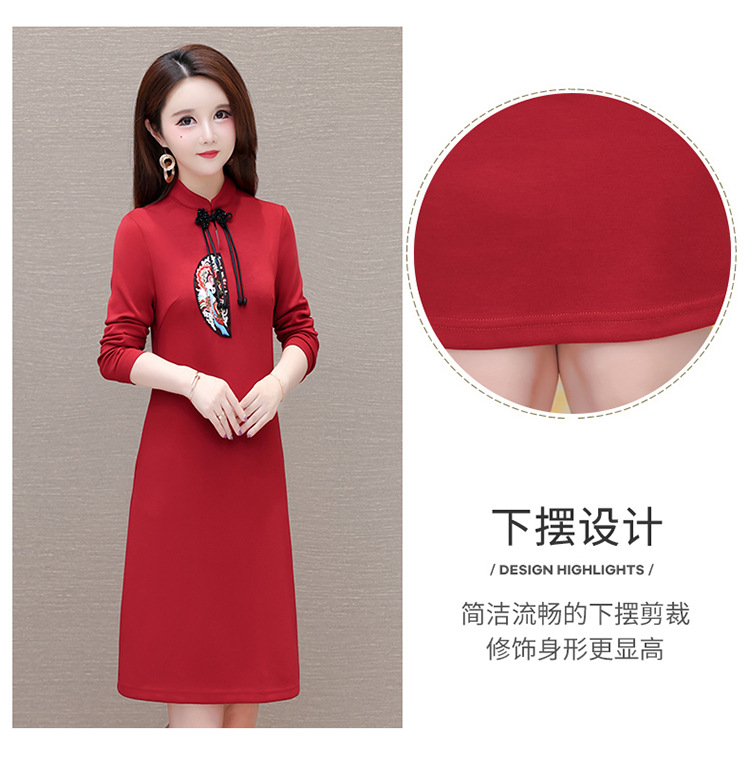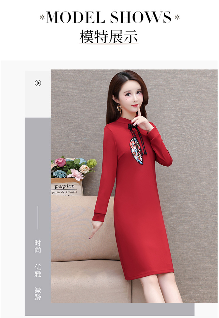冬季加绒加厚保暖旗袍大摆裙,日常改良优雅大码修身显瘦减龄XS857