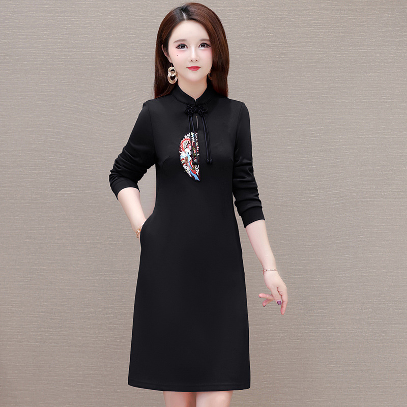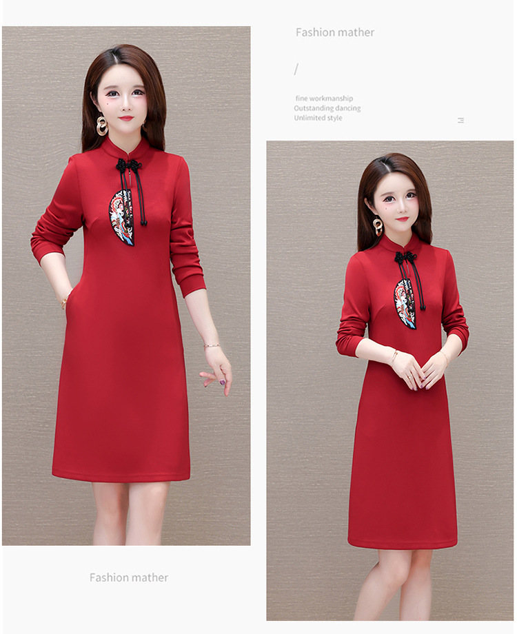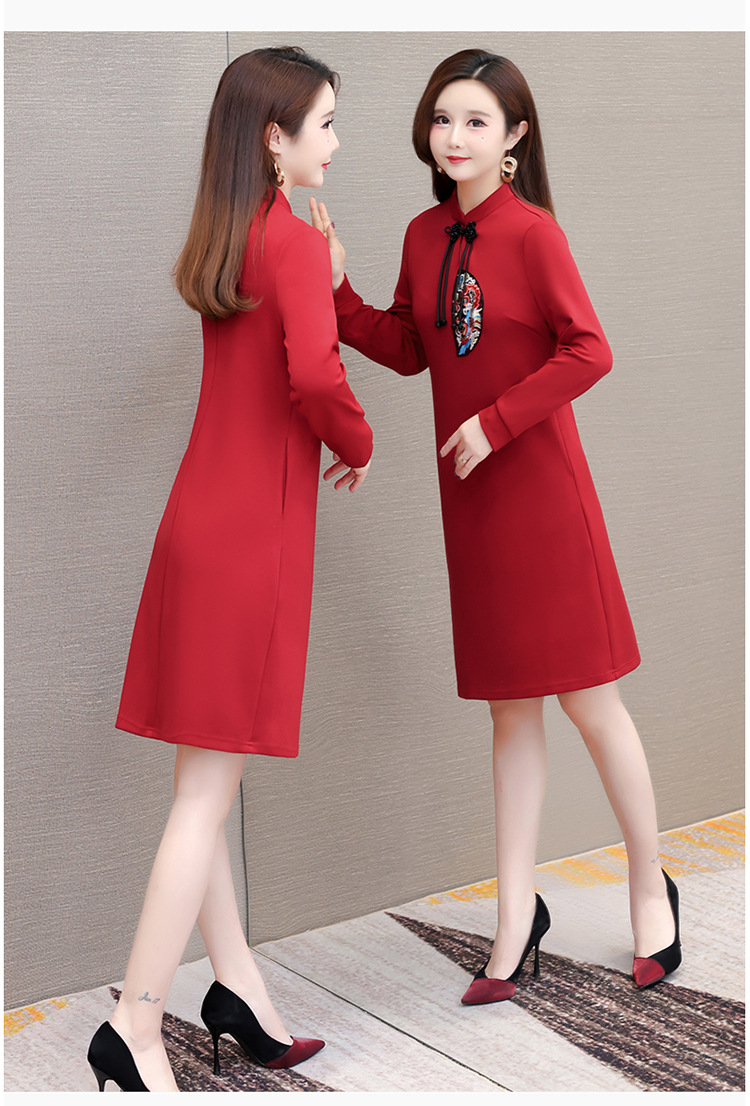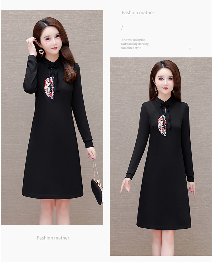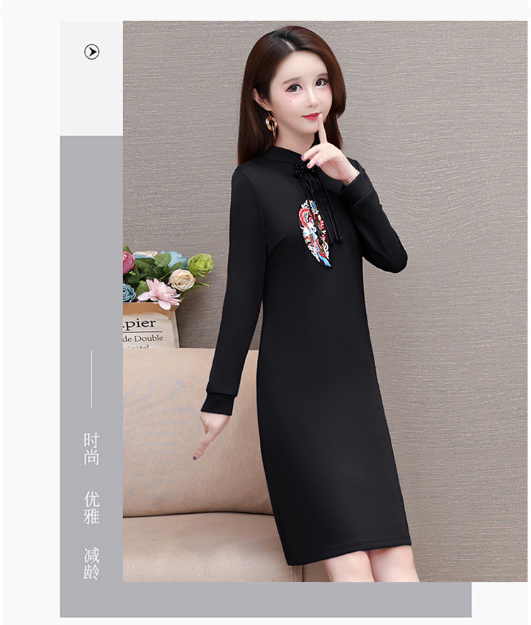 冬季加绒加厚保暖旗袍大摆裙,日常改良优雅大码修身显瘦减龄XS857