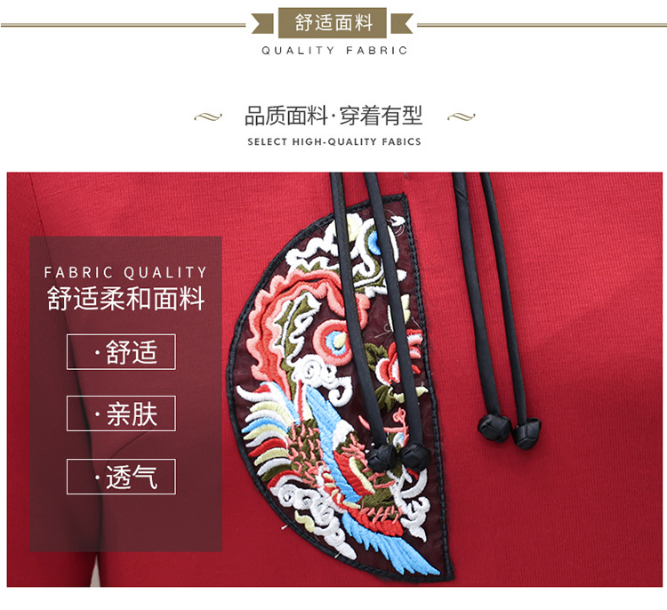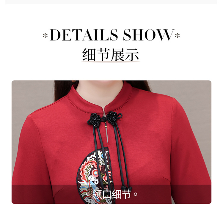 国风中式洋气时髦连衣裙,圆领长袖通勤修身大码A字裙QYM-KSY-YM2448-L