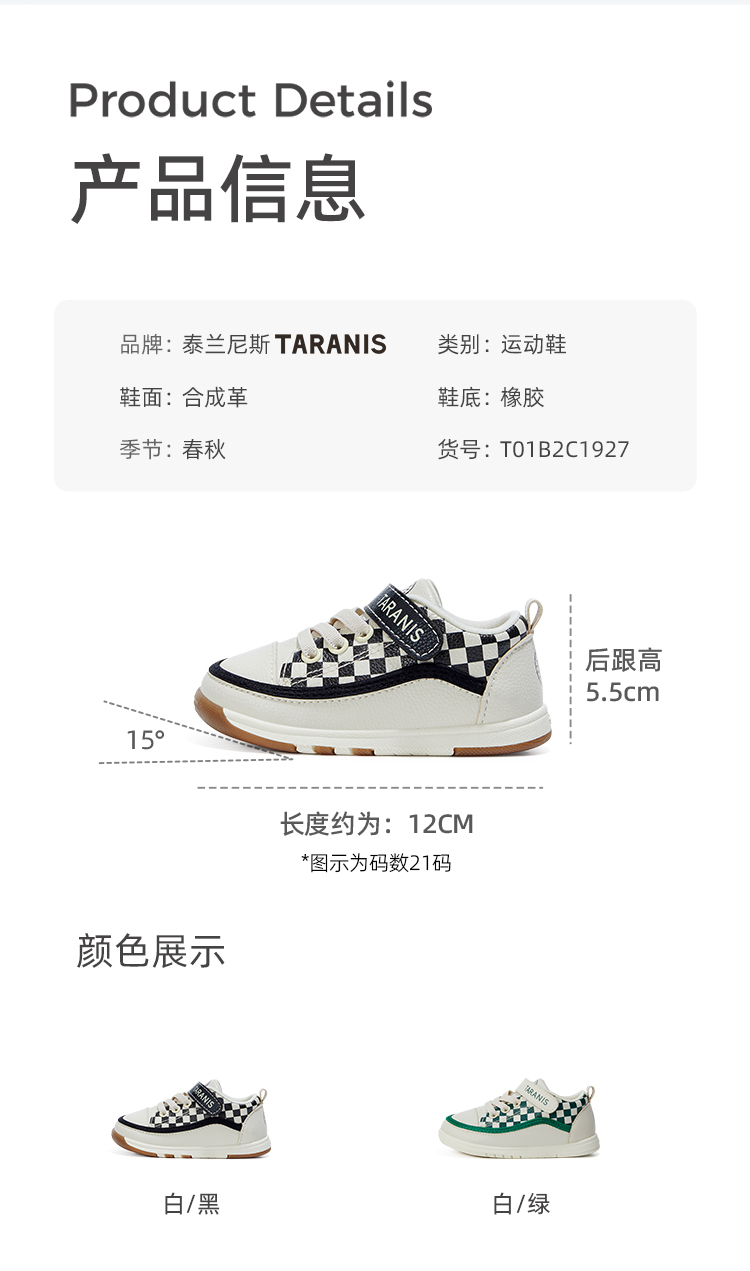 泰兰尼斯秋季婴童段棋盘格宝宝步前鞋学步鞋T01B2C1927