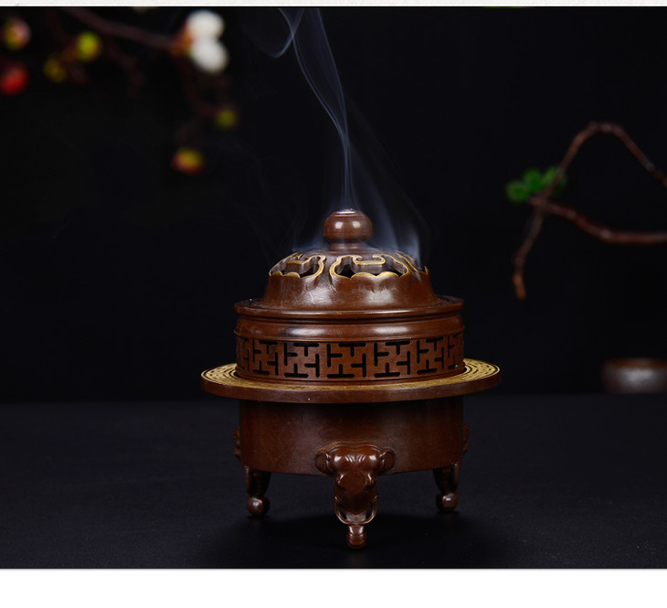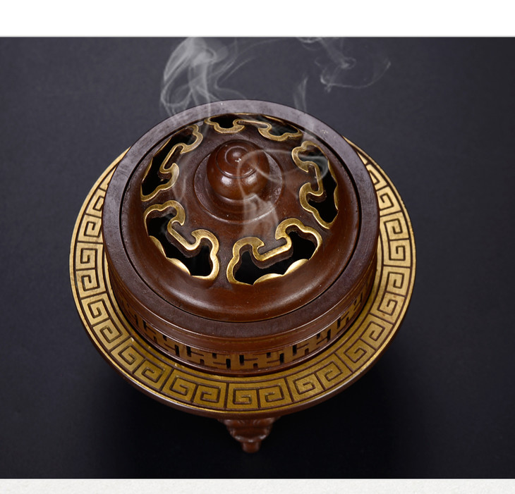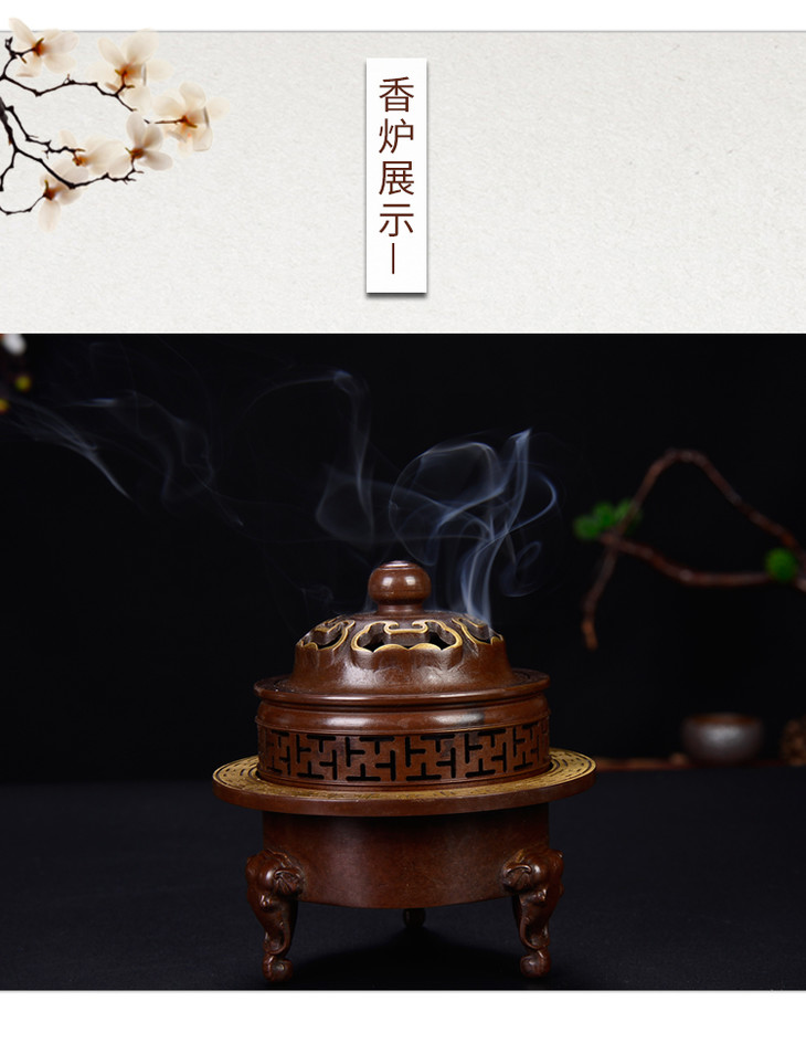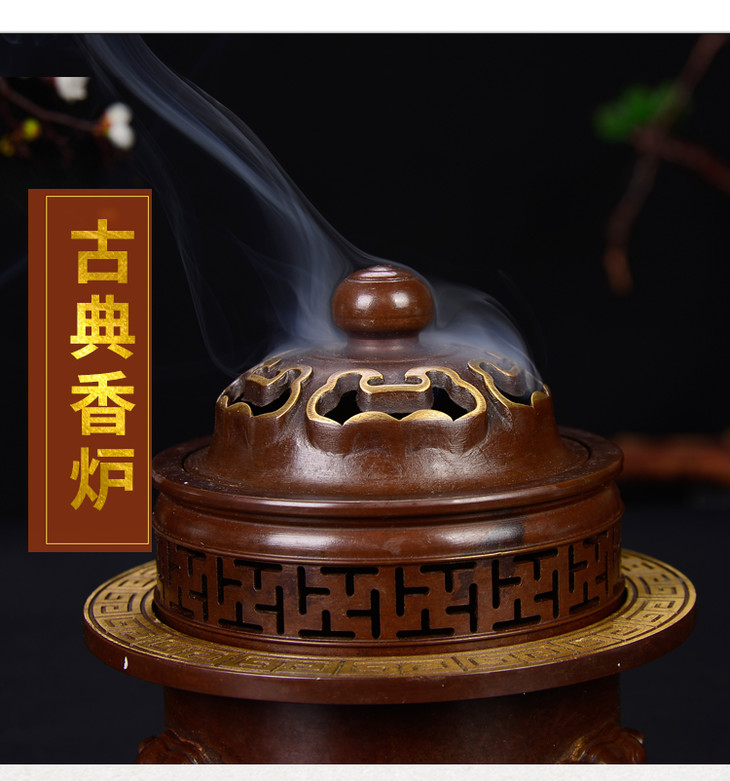 天语龙吟瑞盘香炉象祥云盖仿古铜香炉铜质薰香家居香薰炉供佛茶道香炉