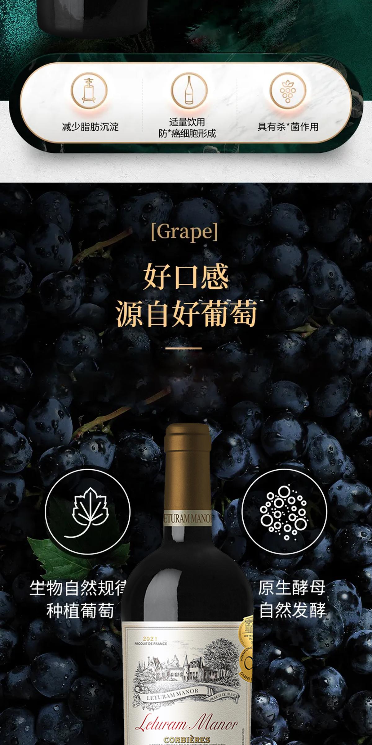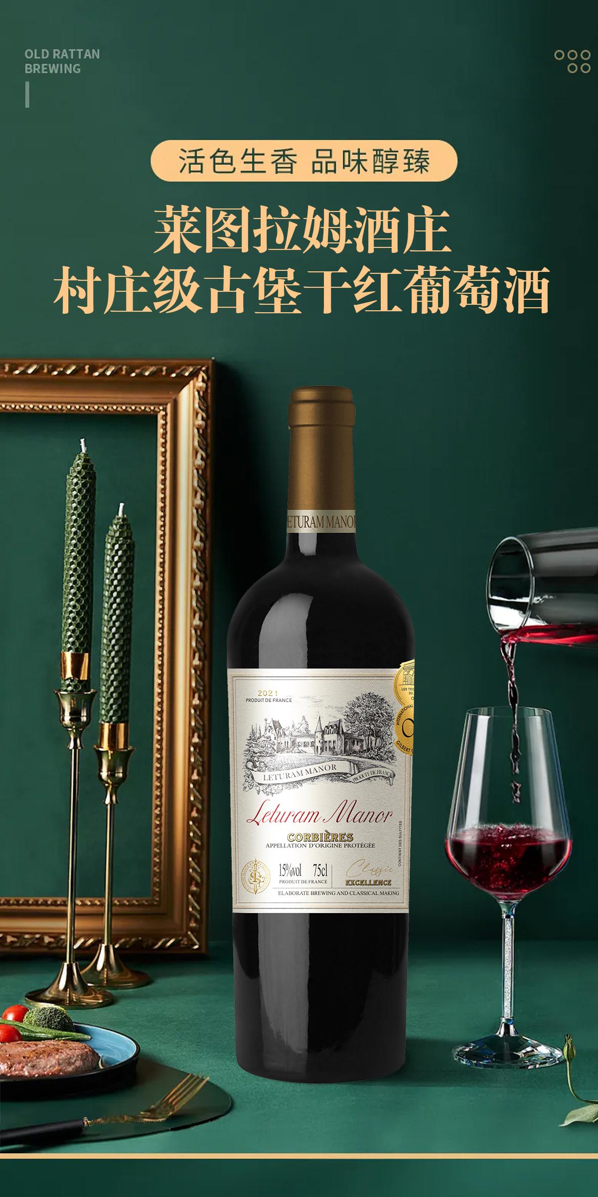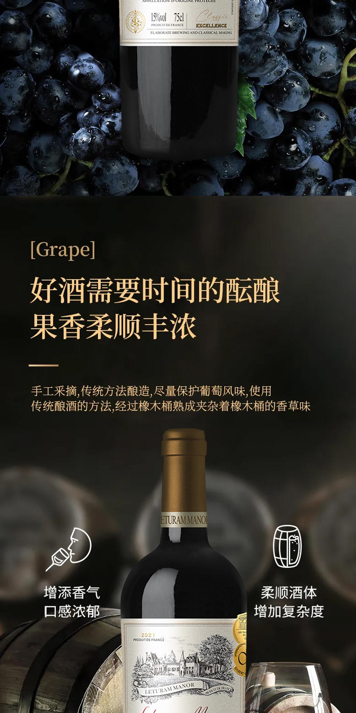 【莱图拉姆酒庄村庄级古堡干红葡萄酒】活色生香 品味醇臻 葡萄酒红酒六支装