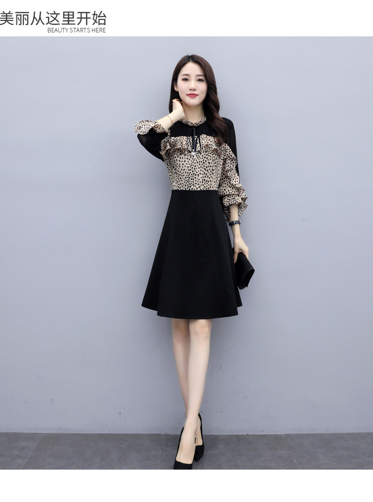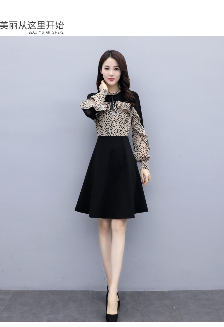 2022秋款连衣裙长袖小个子荷叶袖气质收腰甜美拼接裙HR-WQ999359