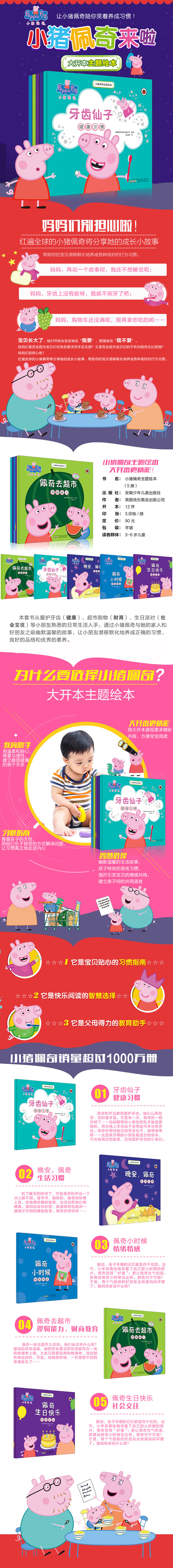 小猪佩奇主题绘本(套装5册) 宝贝的好榜样,父母的好帮手。陪宝贝笑着养成好习惯,快乐阅读的智慧选择。大开本绘本3-6岁,更精彩