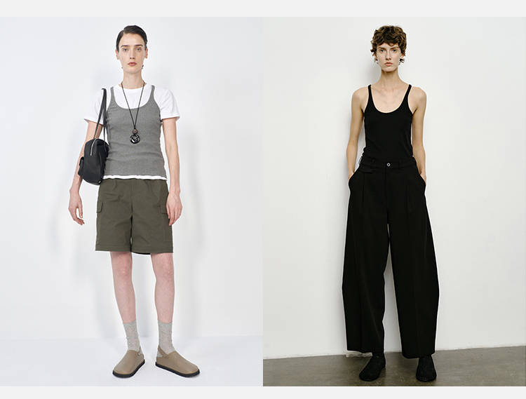 HIDEMI 极简大圆领弹力针织自然棉细肩带背心