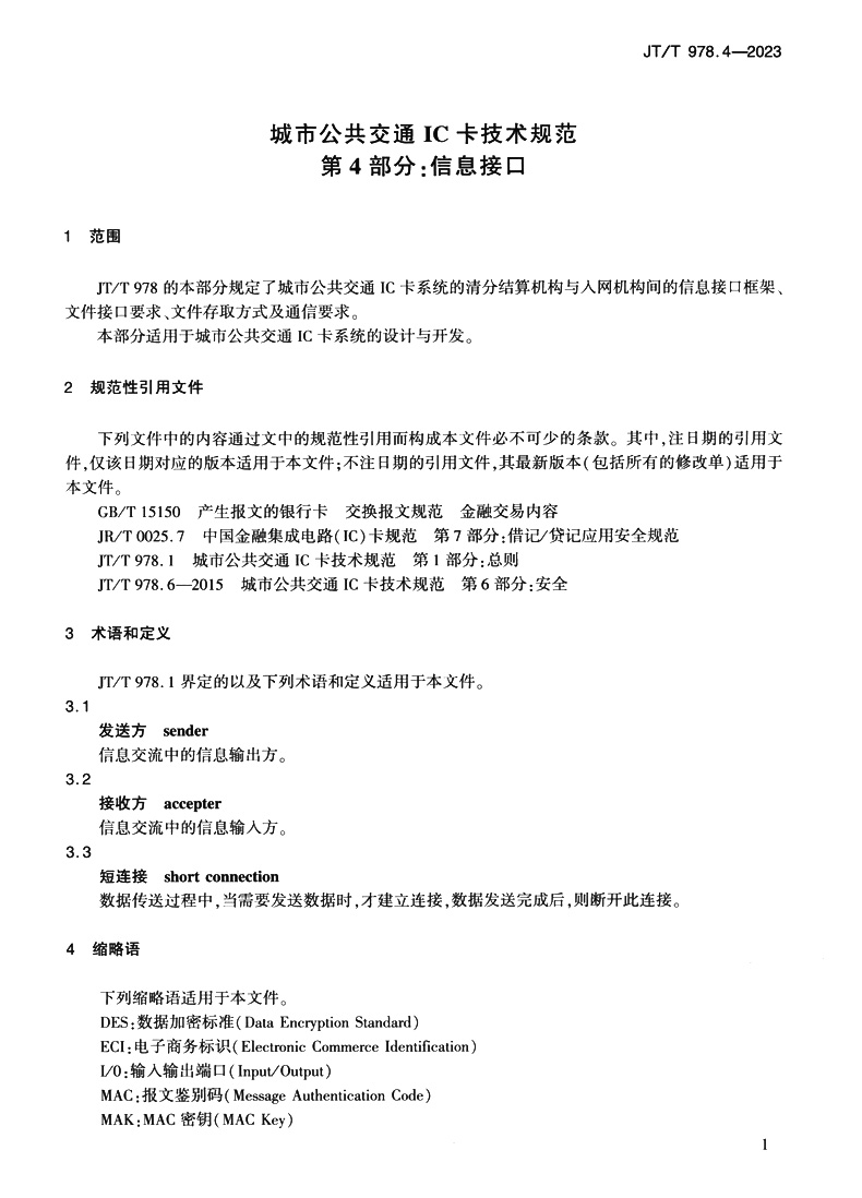 城市公共交通IC卡技术规范 第4部分:信息接口(JT/T 978.4-2023)