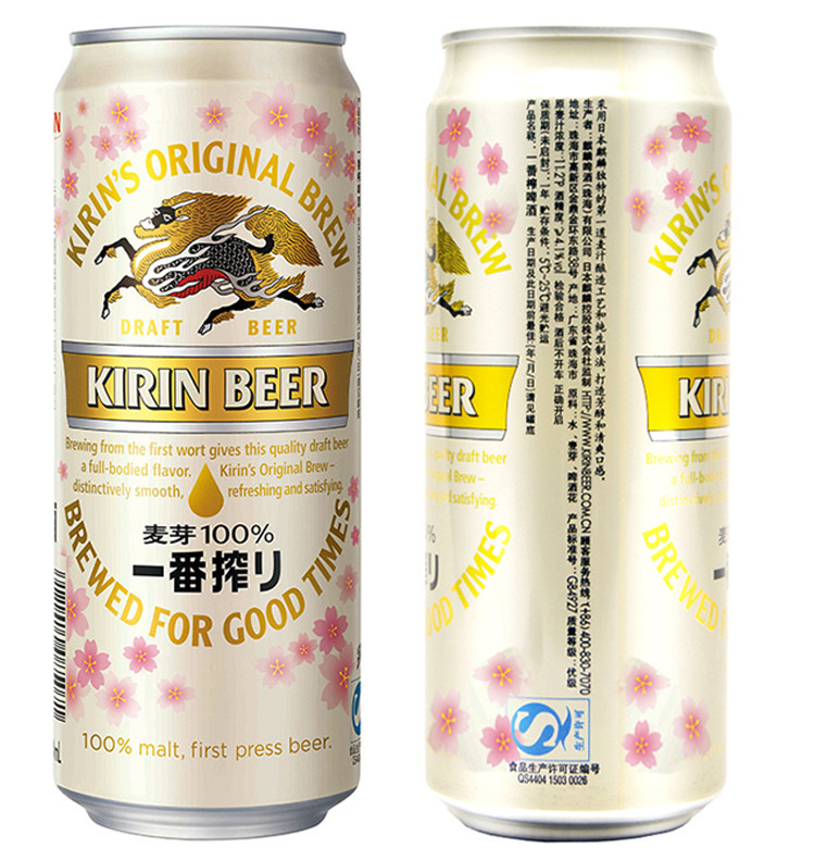 新老包装随机发货 品牌:麒麟一番榨啤酒500ml<br> 原产地:中国珠海<br> 原料及辅料:水、麦芽、啤酒花<br> 原麦汁浓度:11.2度P<br> 酒精度:4.1%vol<br> 净含量:500ml<br> 到期日期:见罐底<br> 保质期:12个月<br> 生产商:珠海麒麟啤酒厂<br> 储藏条件:宜贮藏干爽、阴凉地方,避免阳光直射<br> 请勿过度饮用、孕妇儿童严禁饮用<br> |