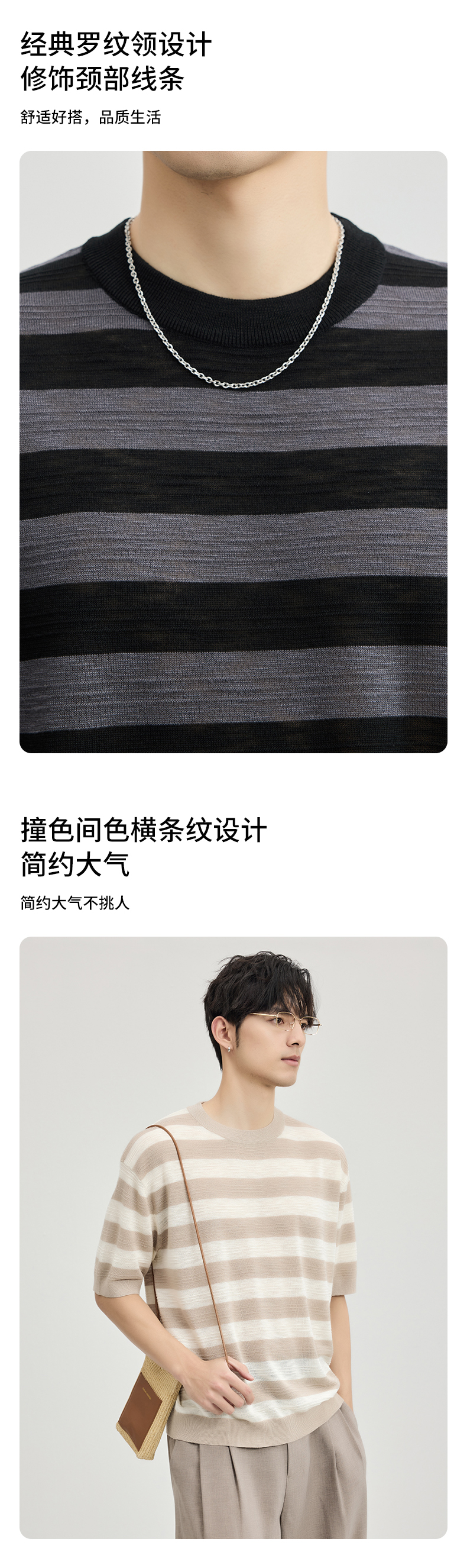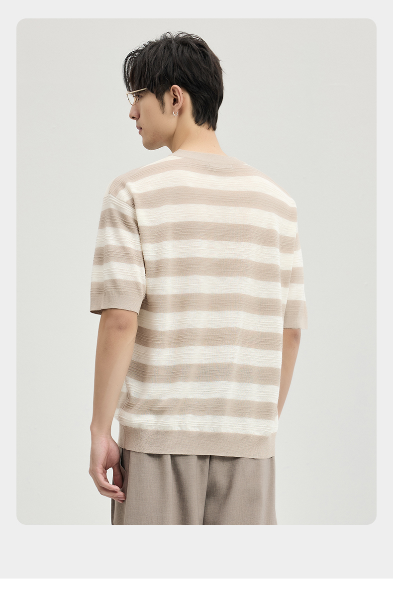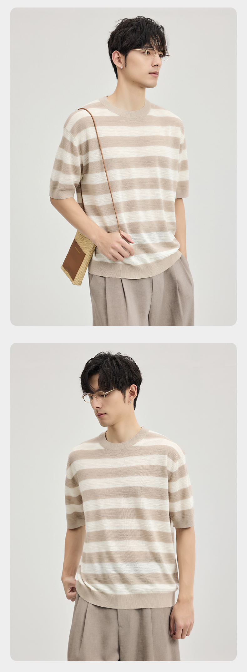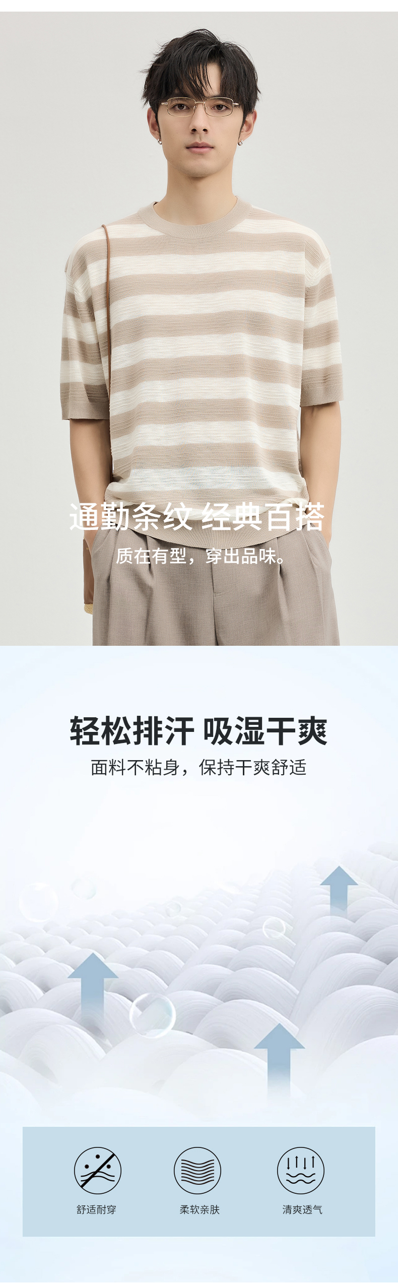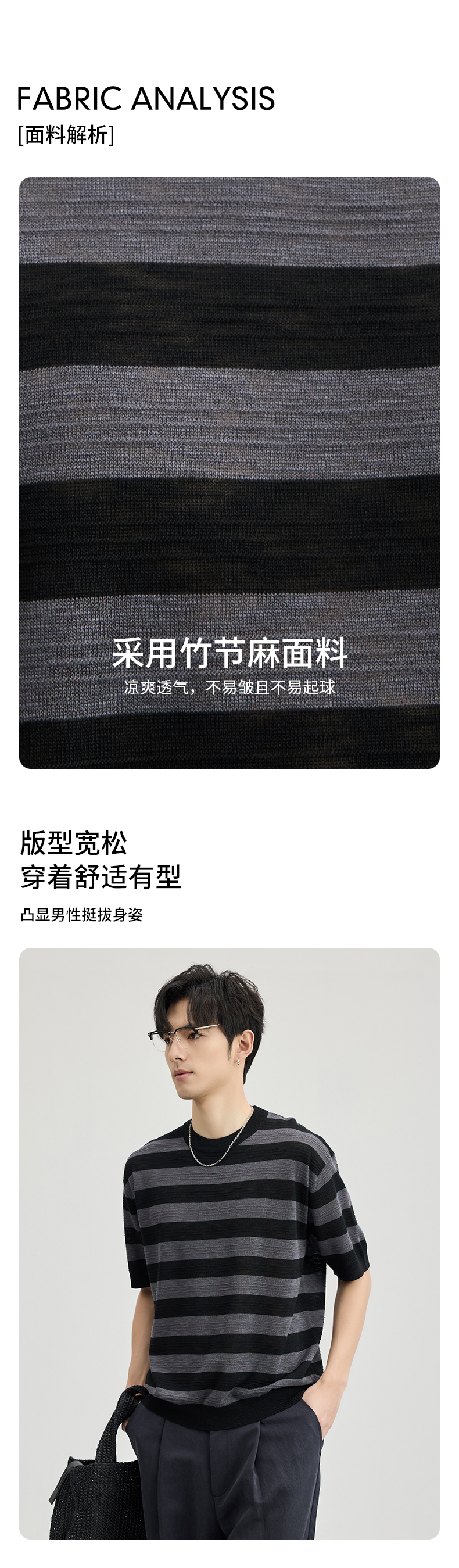 贝纳川竹节麻条纹短袖T恤ECF127002