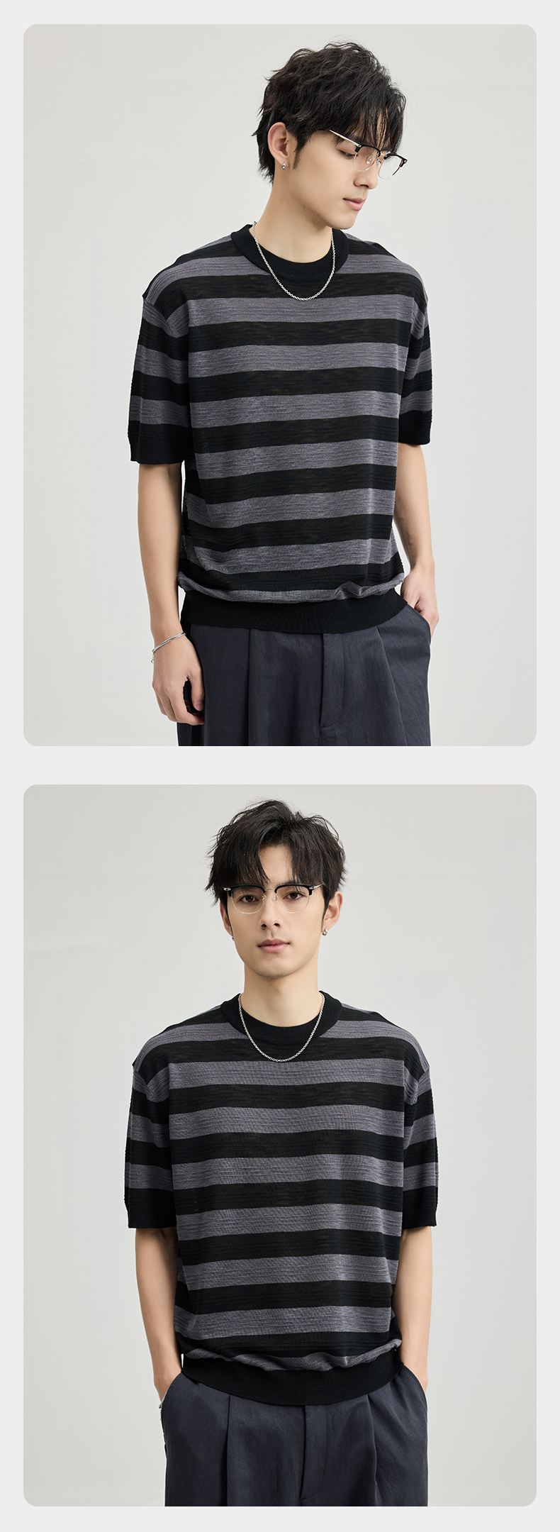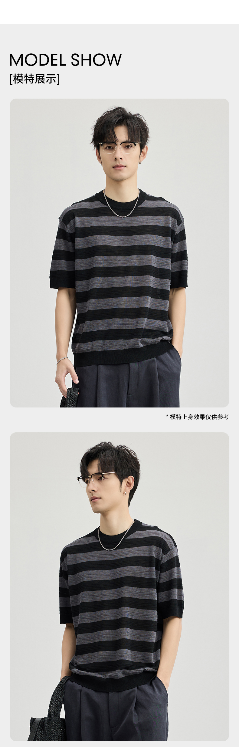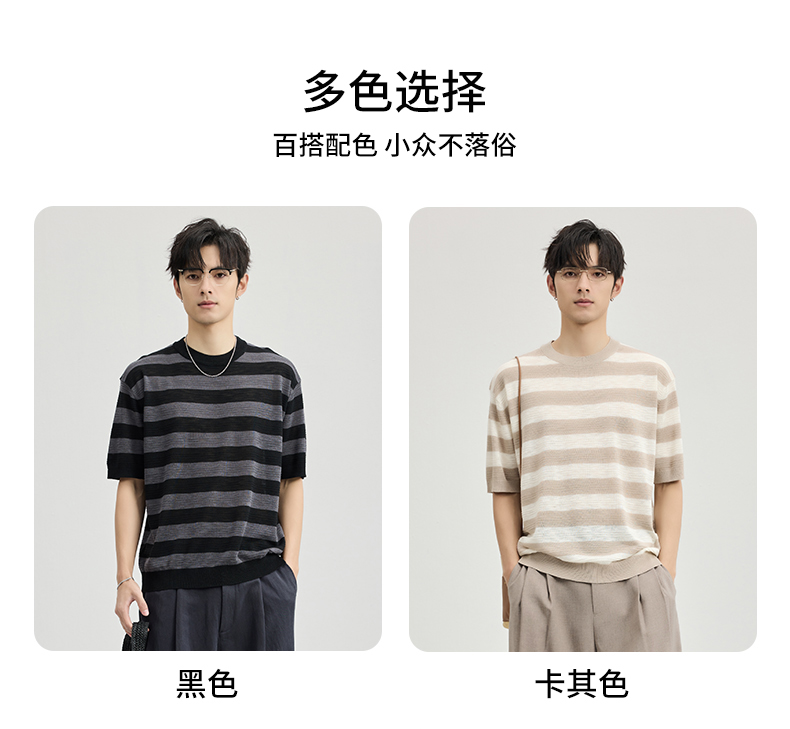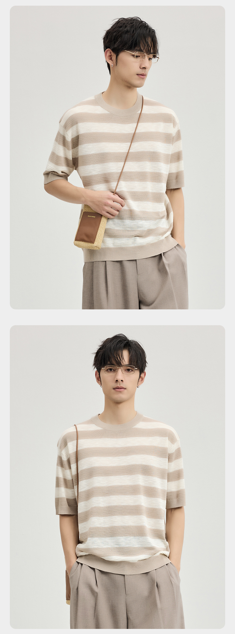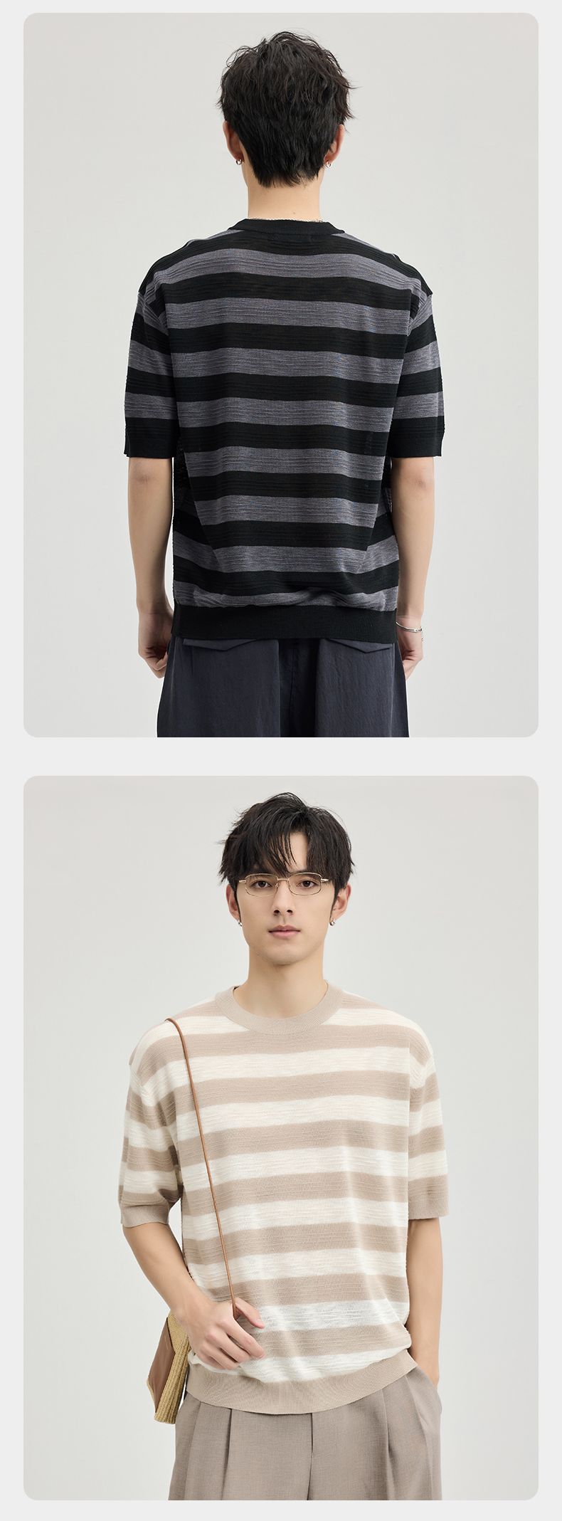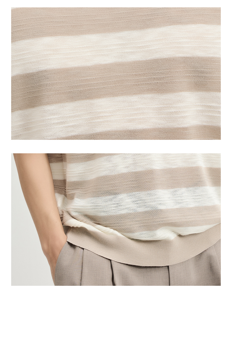 贝纳川竹节麻条纹短袖T恤ECF127002