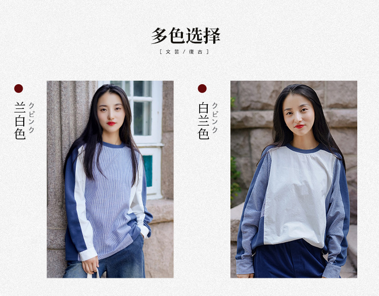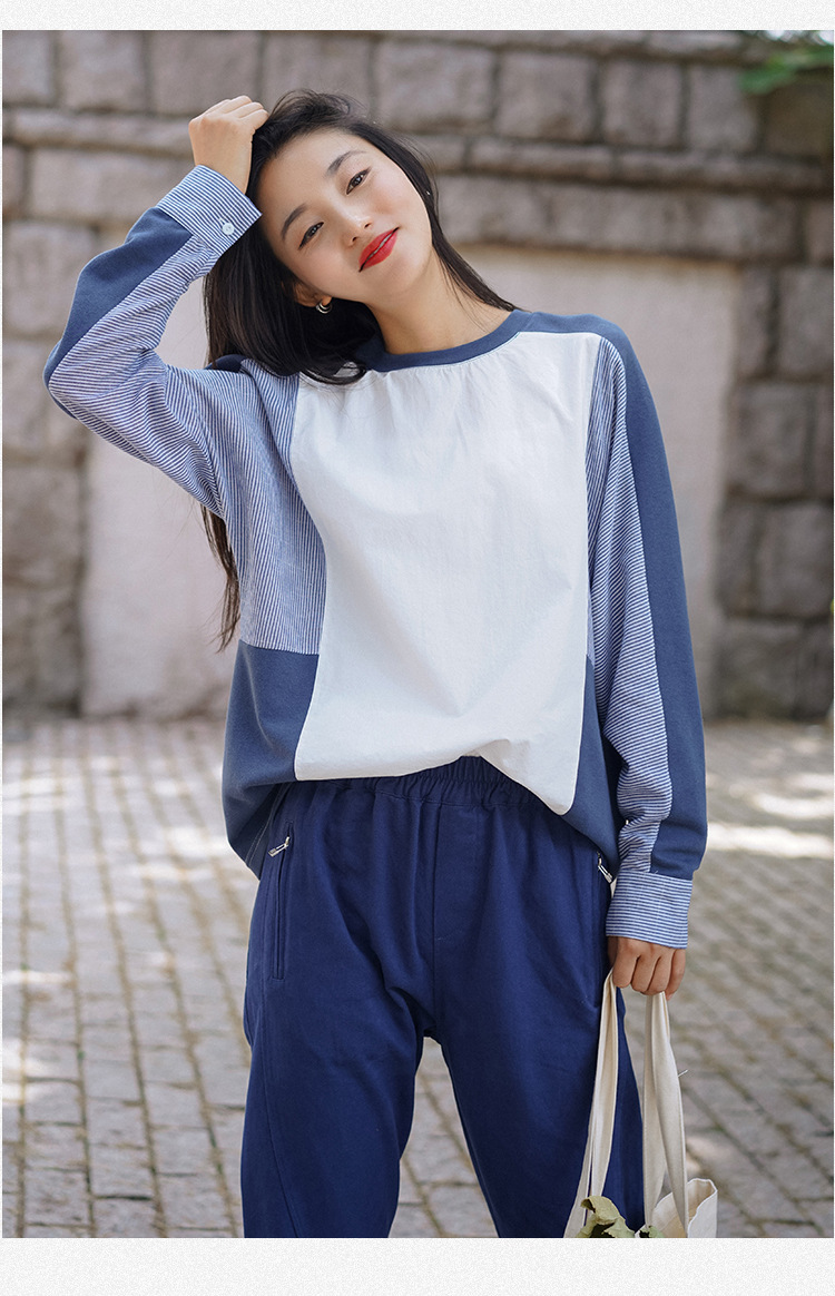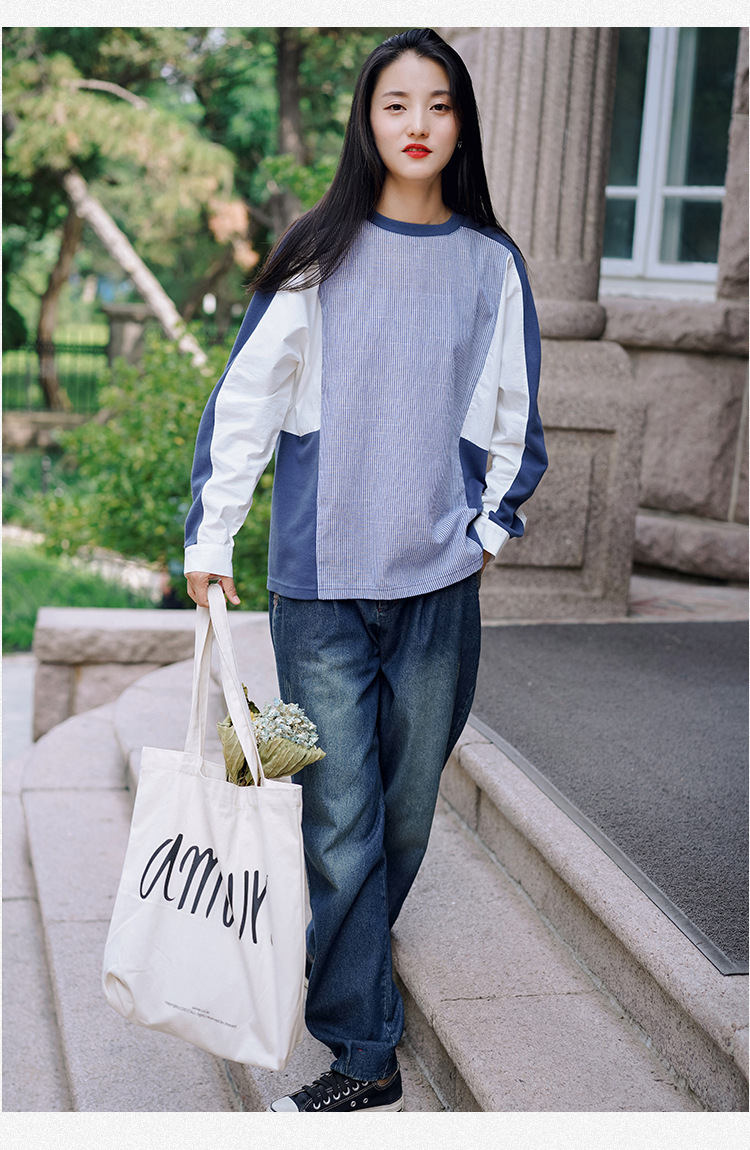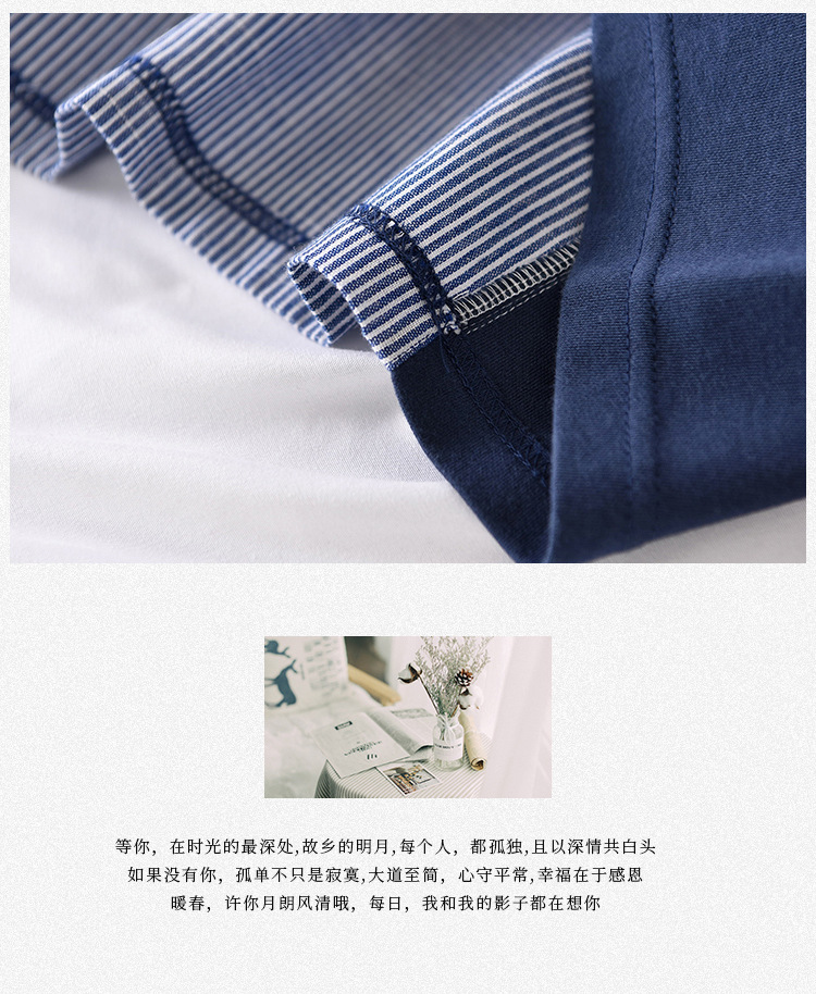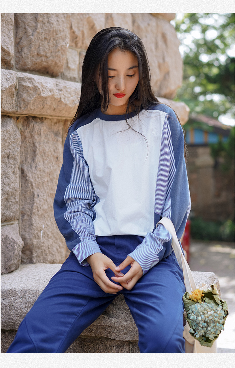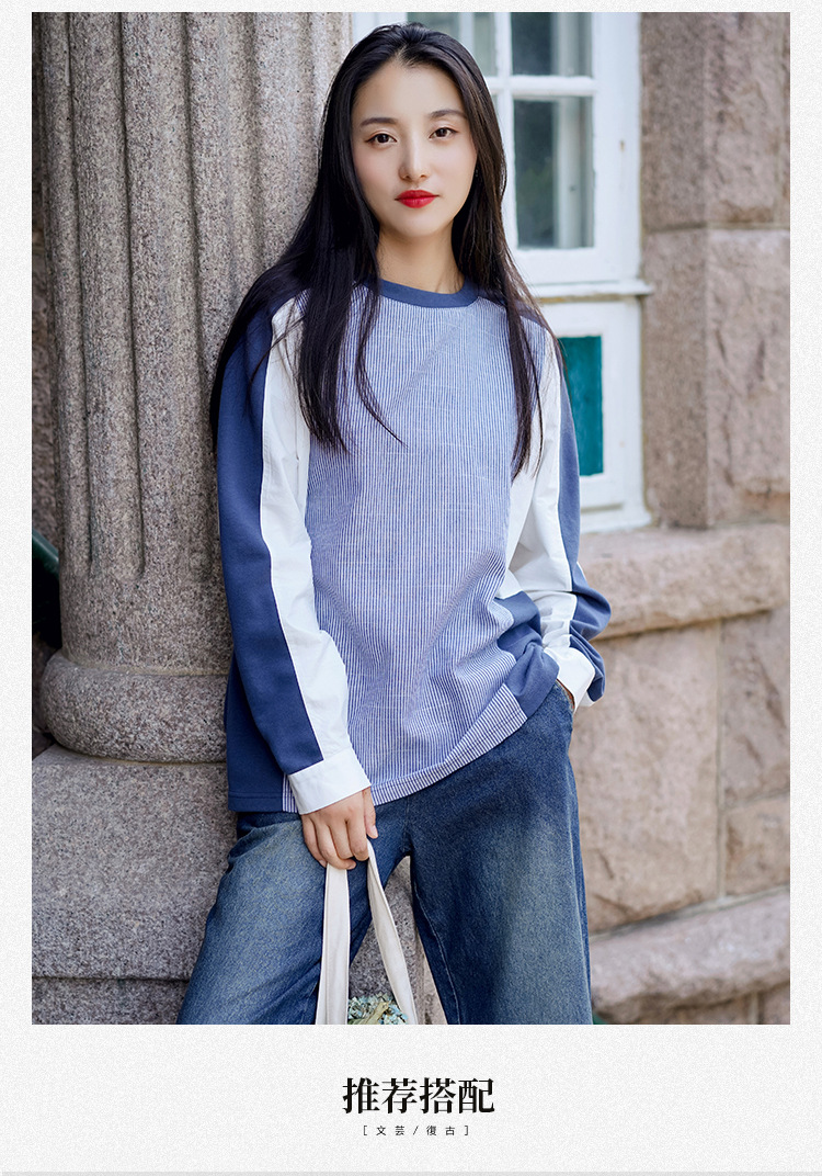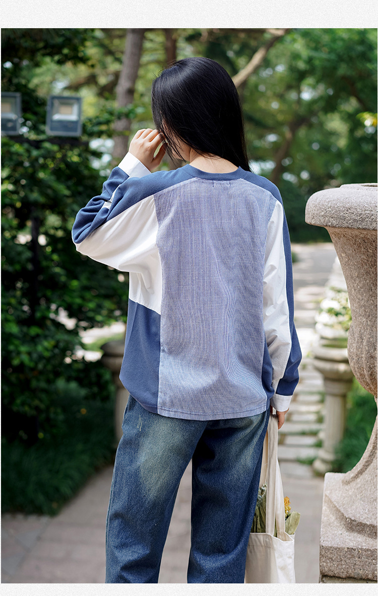 【鹿与安迪】春季海军蓝休闲拼接T恤