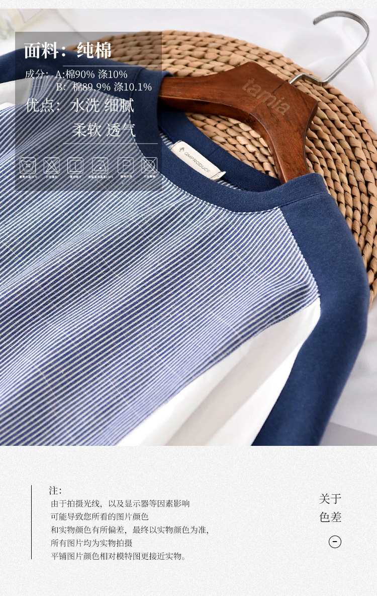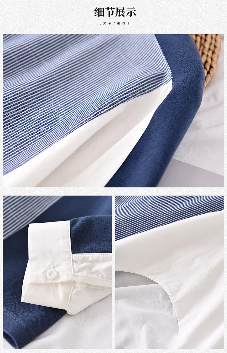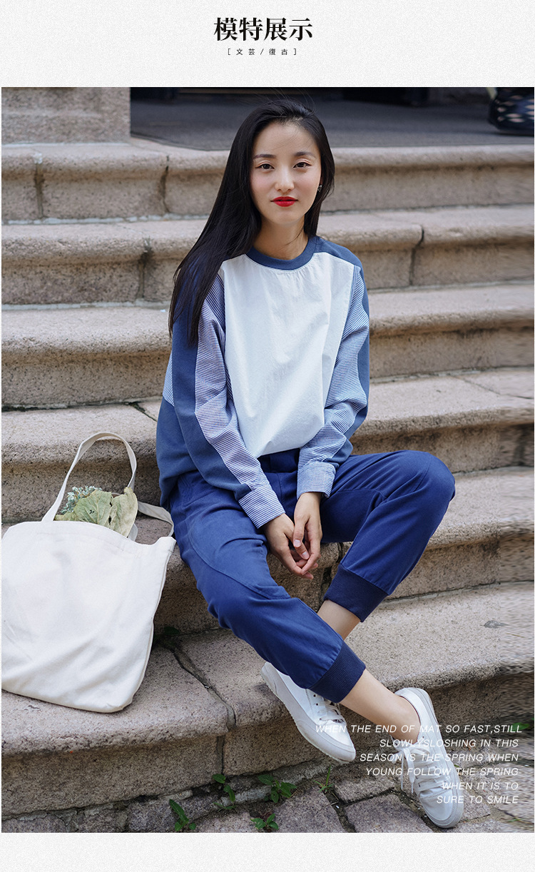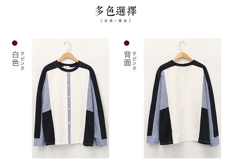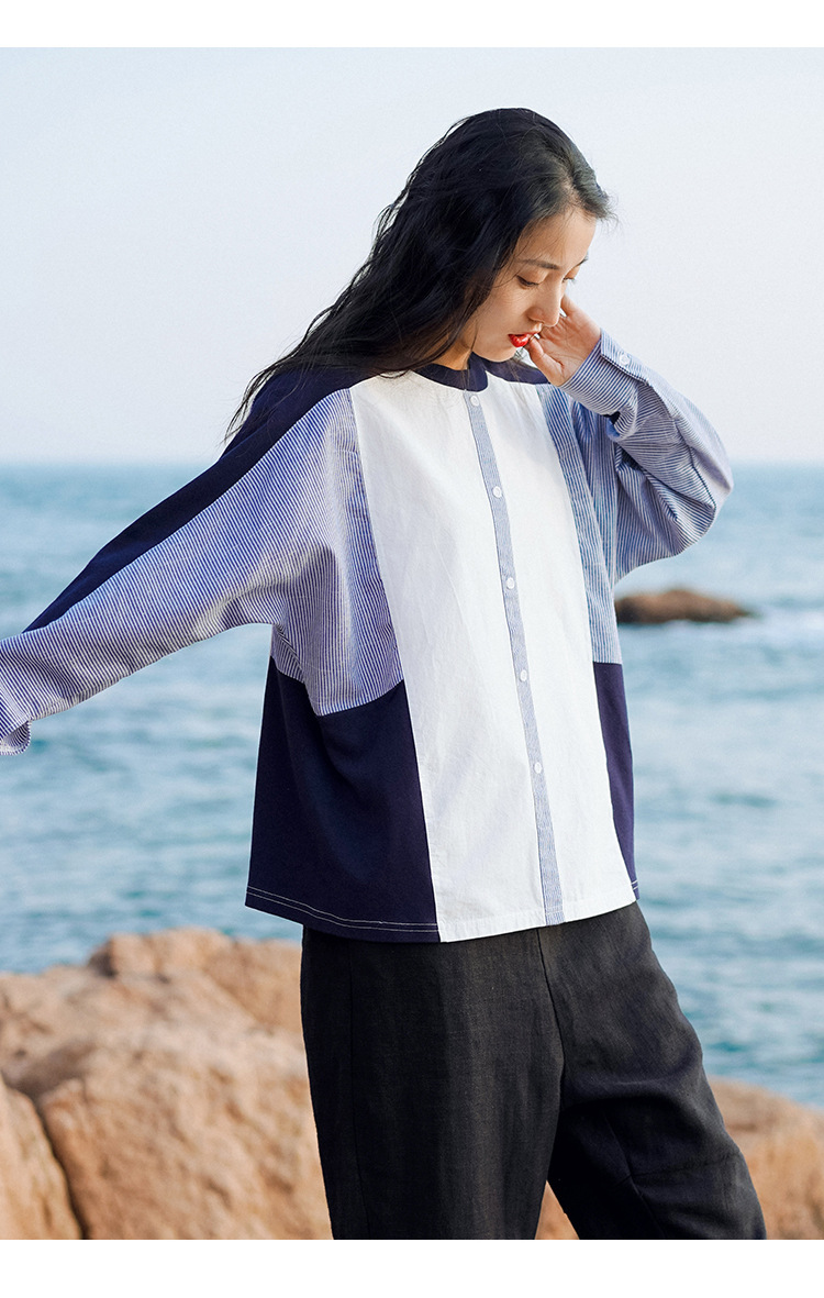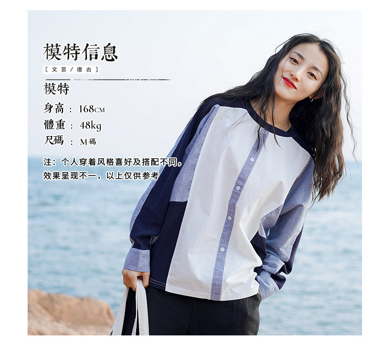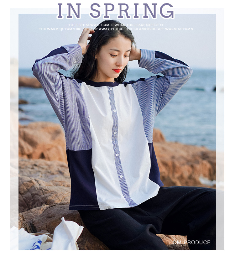 【鹿与安迪】春季海军蓝休闲拼接T恤
