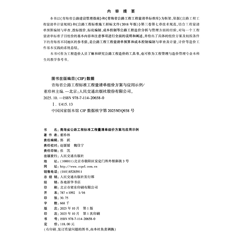 书名:青海省公路工程标准工程量清单组价方案与应用示例