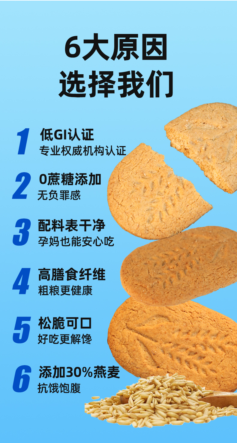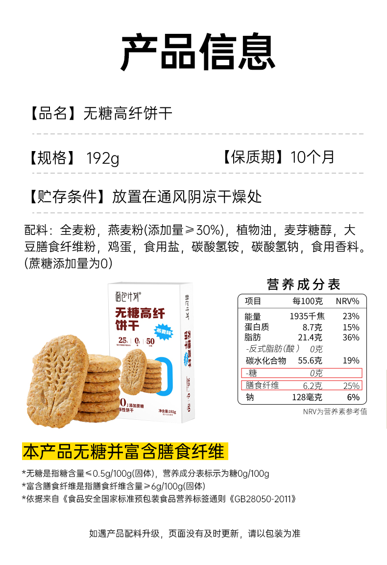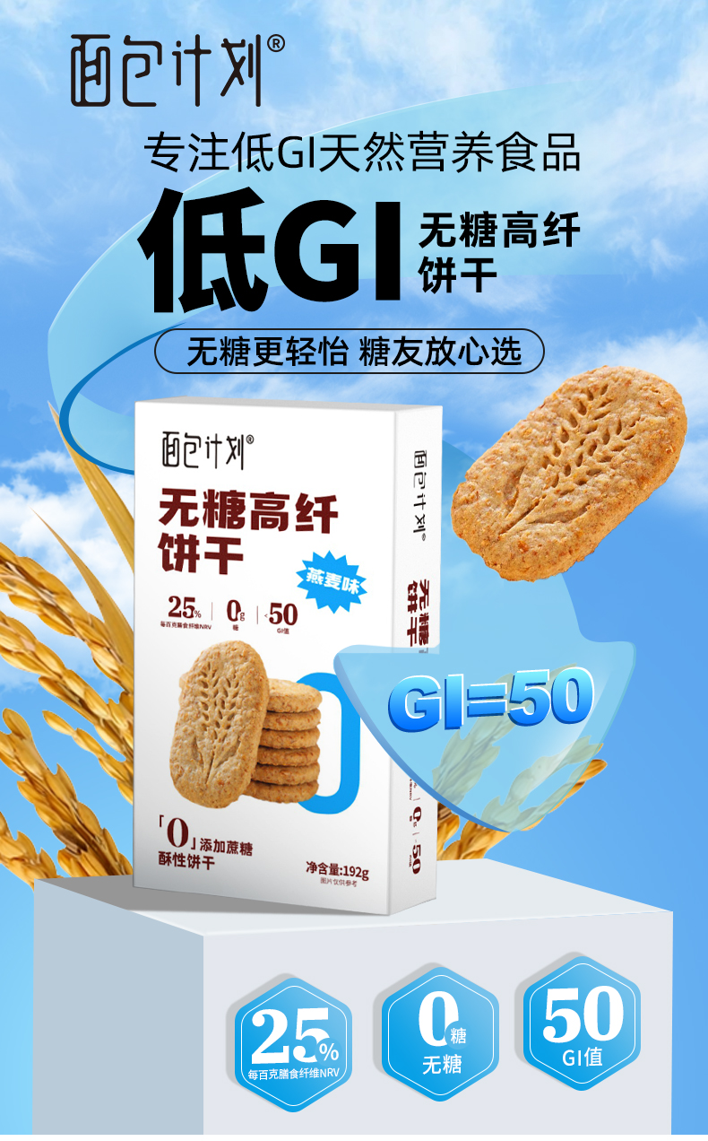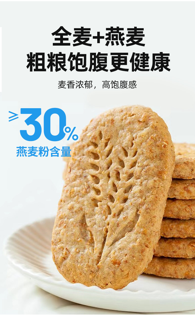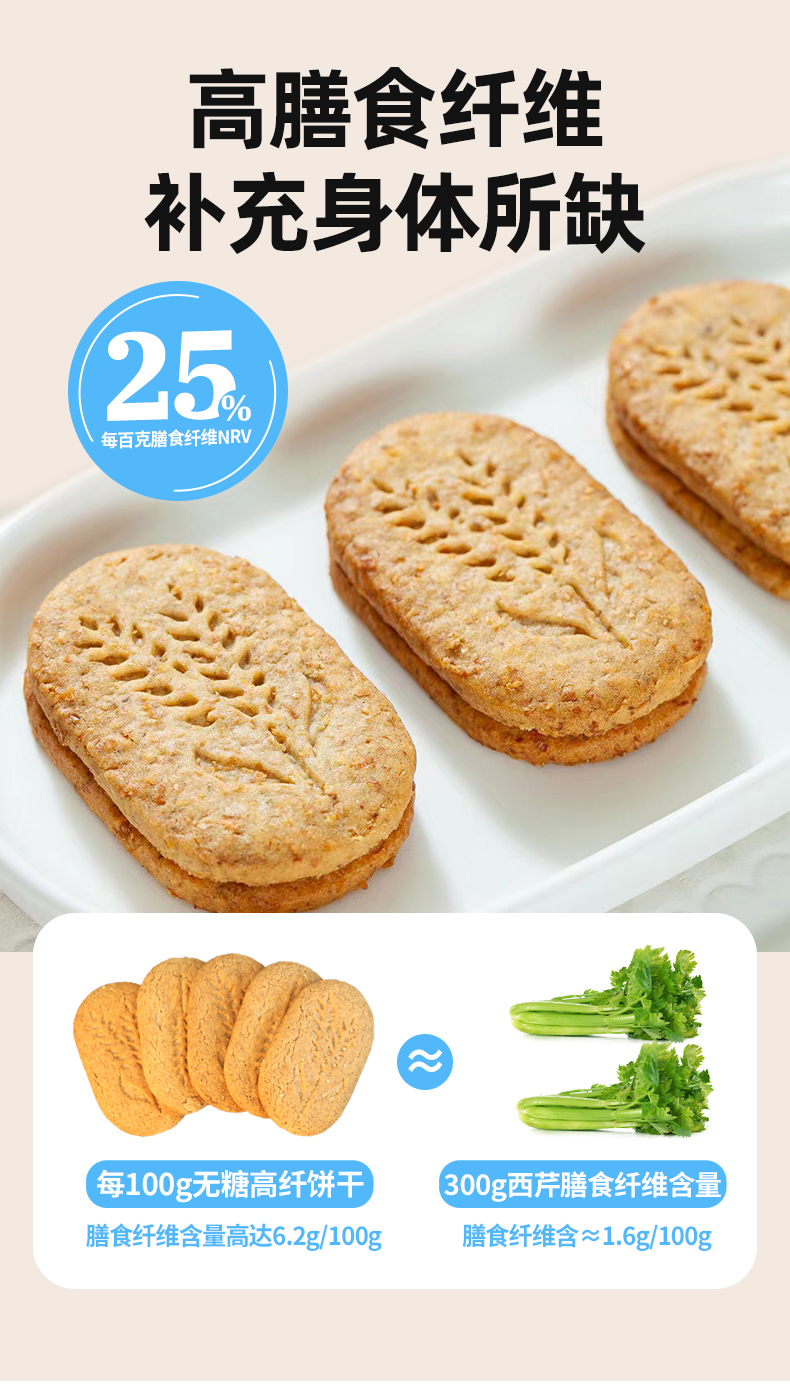 【低GI 缓升糖 高膳食纤维】面包计划无糖高纤饼干192g 健康抗饿小零食 燕麦的添加量≥30%