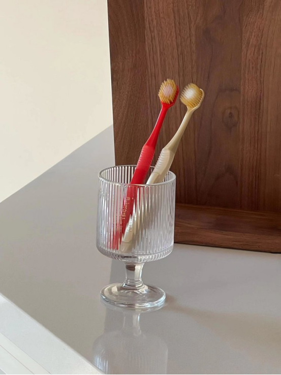 🍷复古高脚杯 🟡通透玻璃与复古纹路的完美组合 创意造型,凸显个性,简约不失格调 越是简单,杯子越是耐看! 杯身修长,200ml精致容量,饮料小酒都没问题 🍑系单一个杯子就要100+ 4个组合装,团价💰19.9元 竖纹、海棠花、露珠三款花色可选 每次看到好看的杯子,脚都挪不动🙃