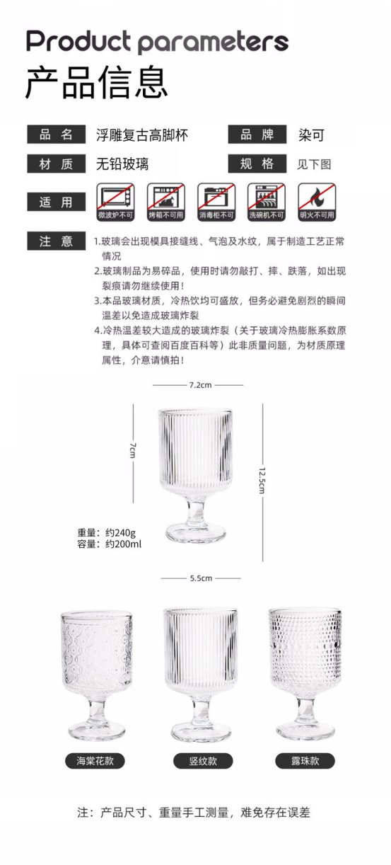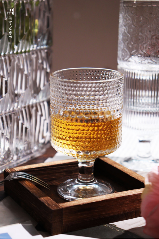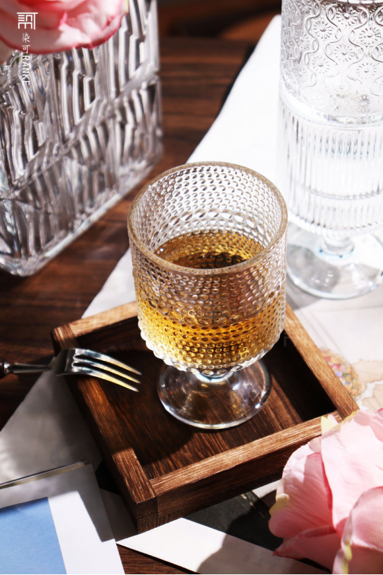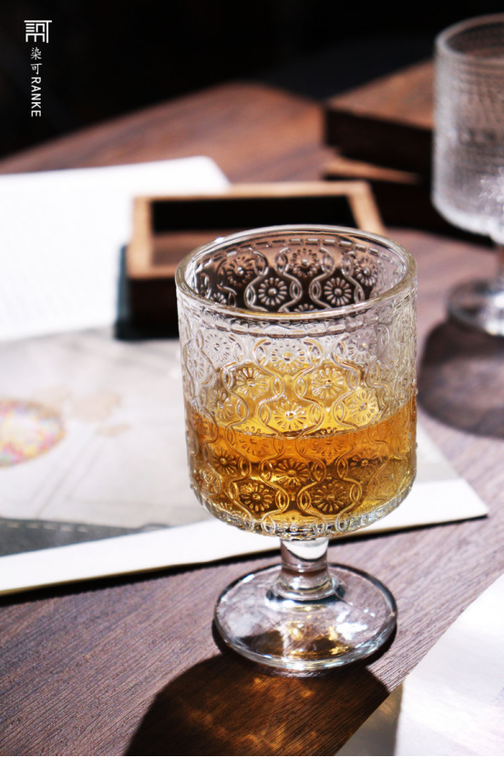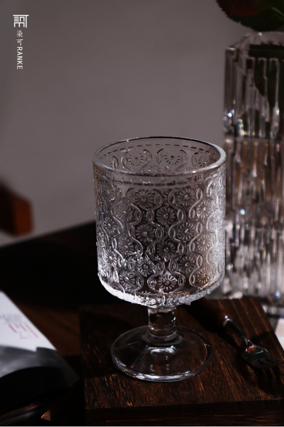 平价的艺术品 杯壁厚实、杯身通透 清澈透明, 有一种愉悦的清凉感! 配上各种法式风格的浮雕图案 在光下有一种水晶杯的瑰丽剔透之美