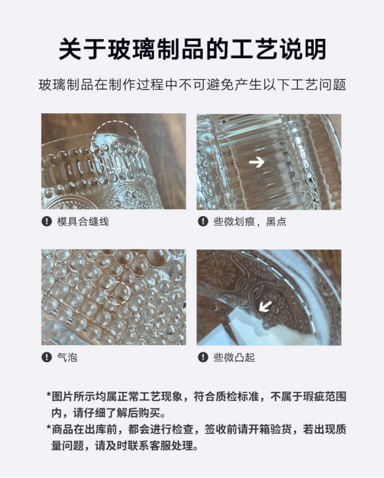 ⭐️杯壁厚实: 厚重的手感带来的是安心的质感, 同时玻璃通透晶莹, 杯子上还有清晰立体的浮雕图案,很是温润可爱。
