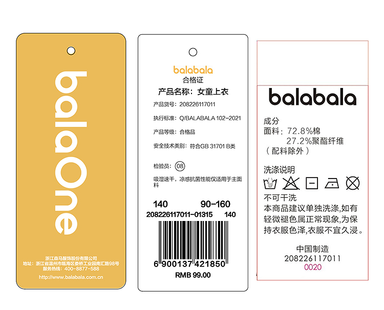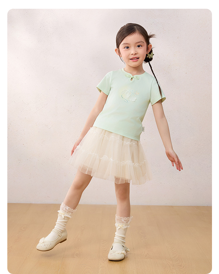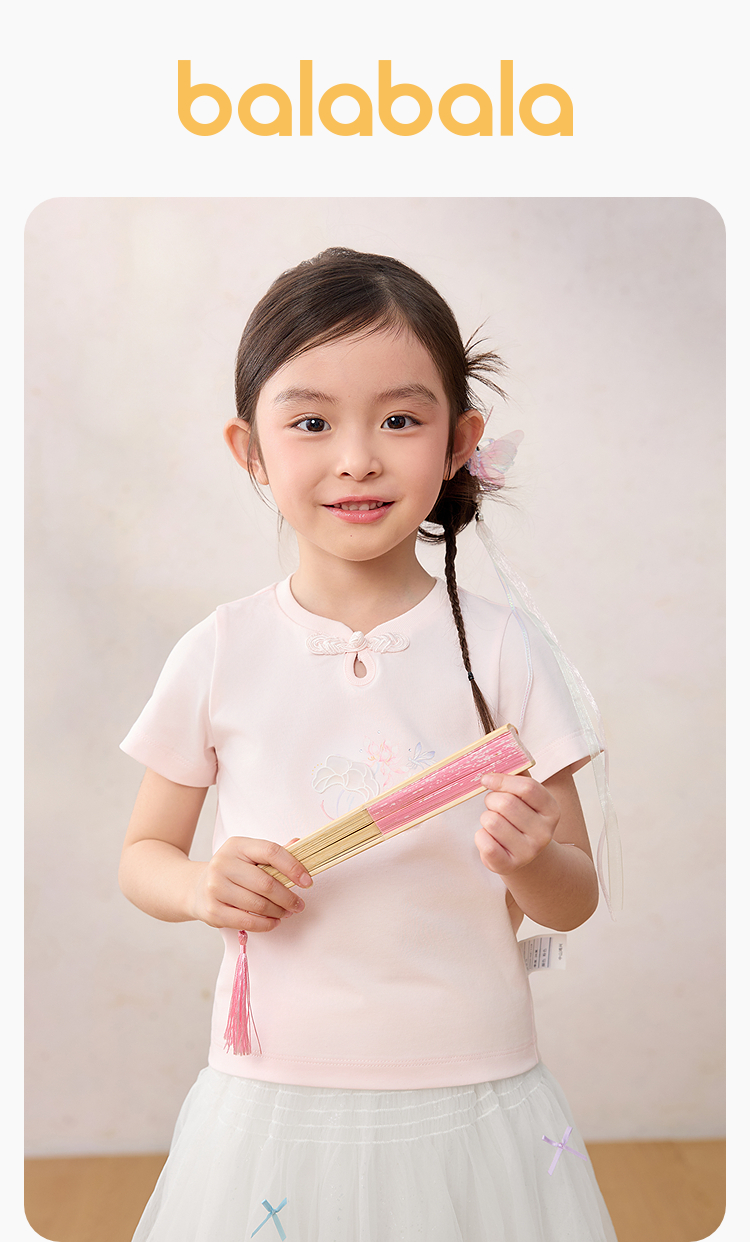 【balaOne】巴拉巴拉童装女童短袖t恤儿童2026新款夏抗菌上衣国风