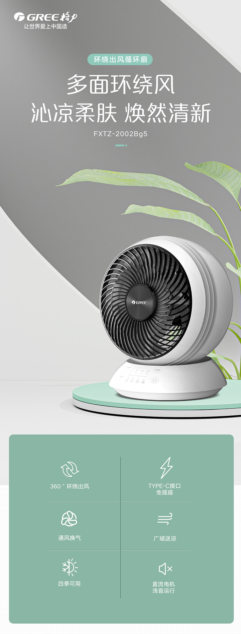 格力·台式循环扇 电风扇 FXTZ-2002Bg5 白+黑色