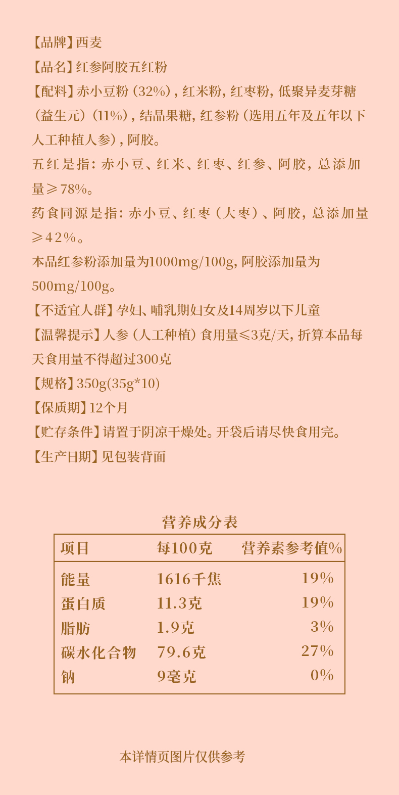 红参阿胶五红粉350g 新中式滋补道地选材红参+阿胶+赤小豆+红枣+红米食养系列