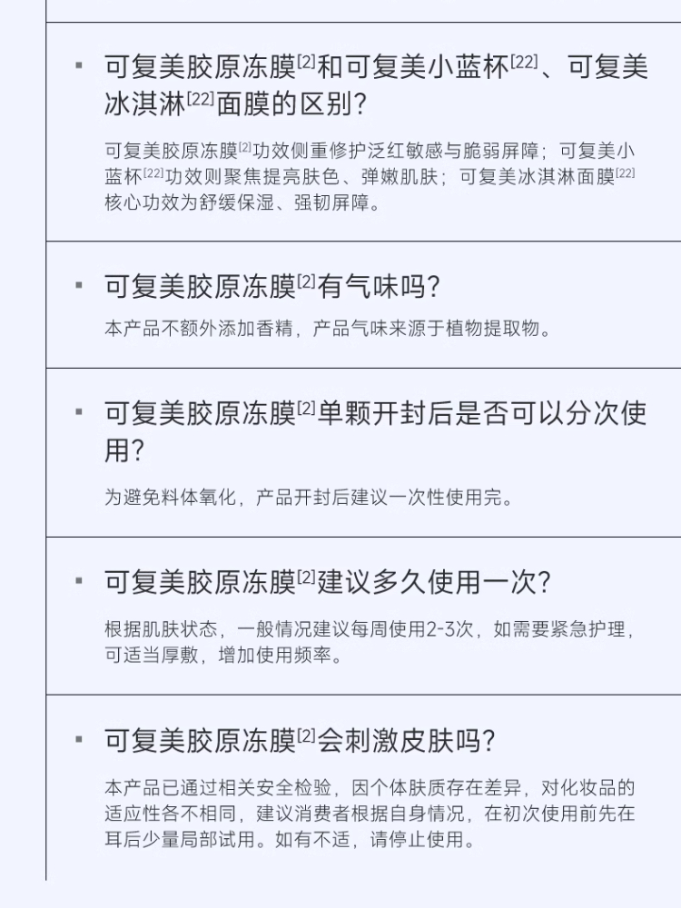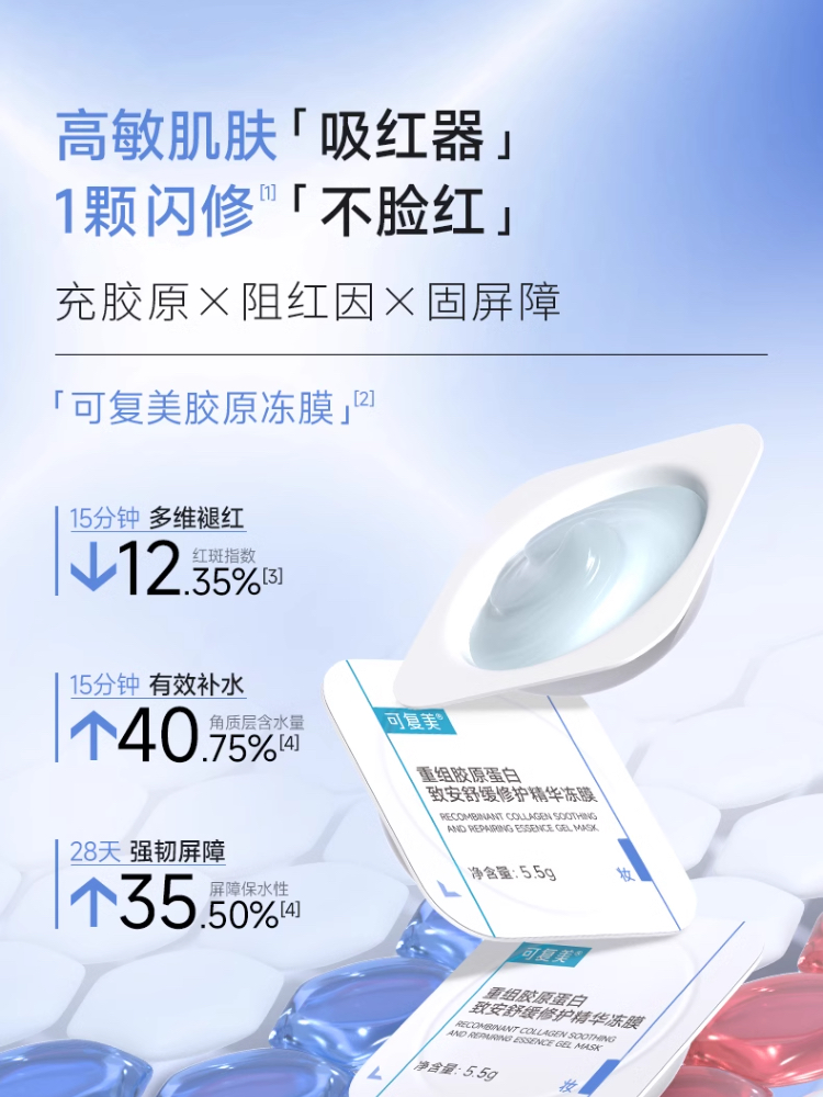 【敏感肌首选】可复美 重组胶原蛋白补水褪红涂抹面膜(精华啫喱冻膜)5.5g*10颗