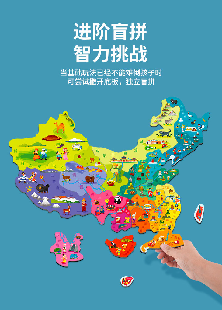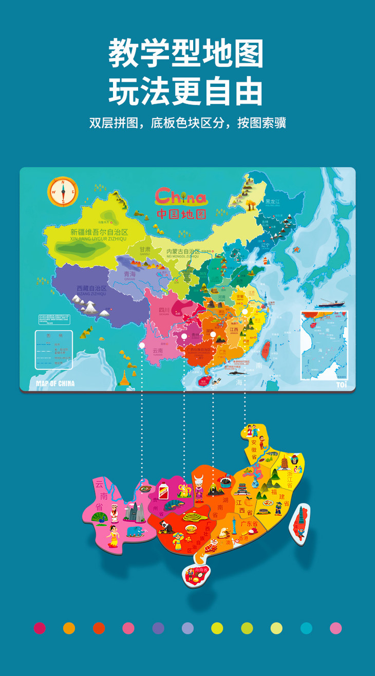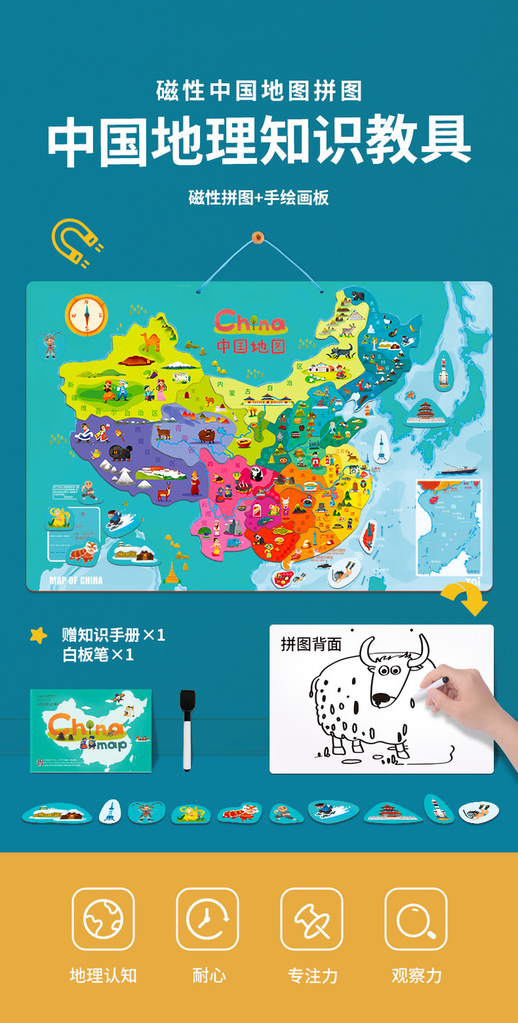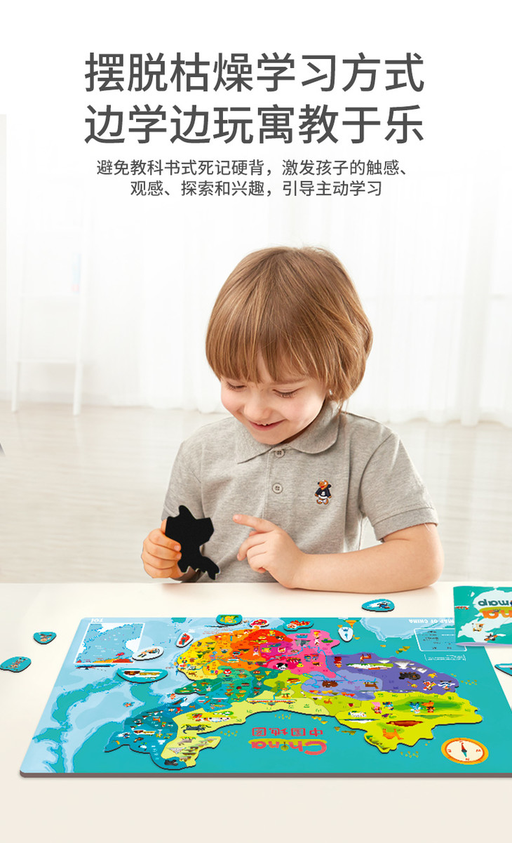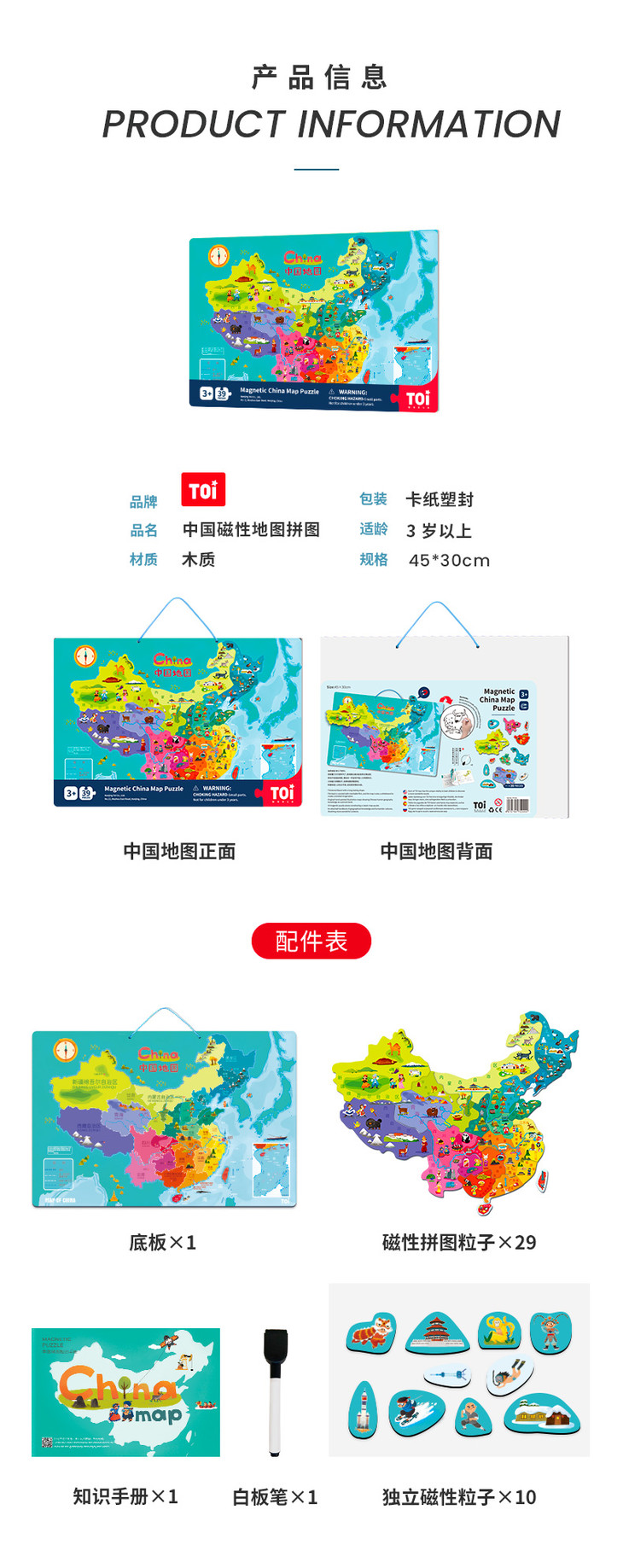 【两用磁性拼图+手绘画板】TOI图益木质磁性中国地图拼图儿童早教益智玩具幼儿园宝宝启蒙可擦写白板女孩男孩3-4-5-6岁地理知识教具