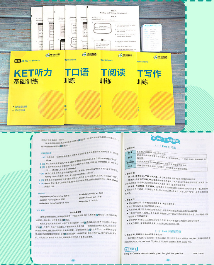 2.分册装,六书合一,一本搞定剑桥KET考试,分题型突破听力、阅读、口语和写作。从基础到高分,词汇卡片夯实词汇基础,模拟试卷助力考前冲刺;