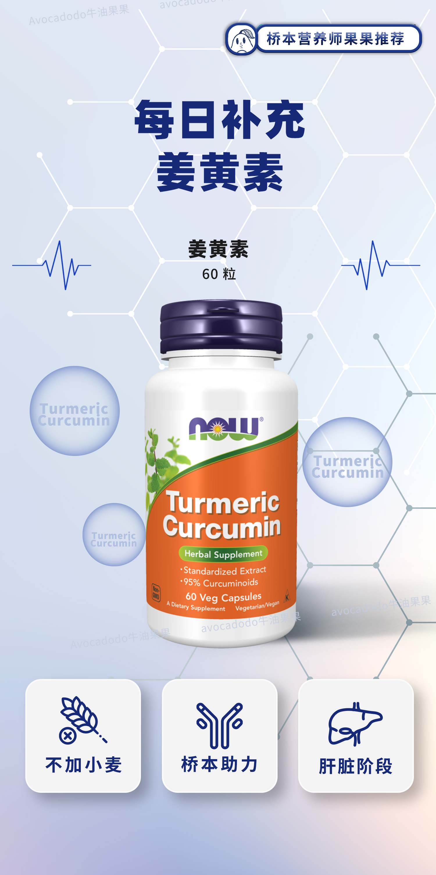 保税仓NOW诺奥姜黄素60粒重金属关爱肝脏牛油果果桥本90天美国