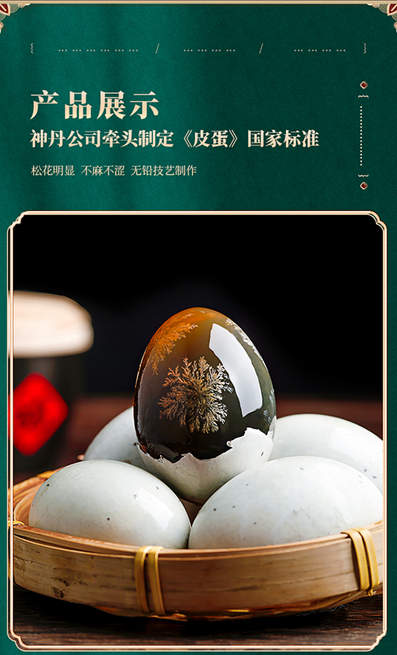 湖北神丹健康食品有限公司,中国实力雄厚的蛋产品加工企业,年生产、销售各类蛋品数亿枚,是中国目前品种全、销售广的禽蛋研发加工基地。神丹公司以“服务农民,健康人民”为宗旨,以推动中国健康食品发展为己任。