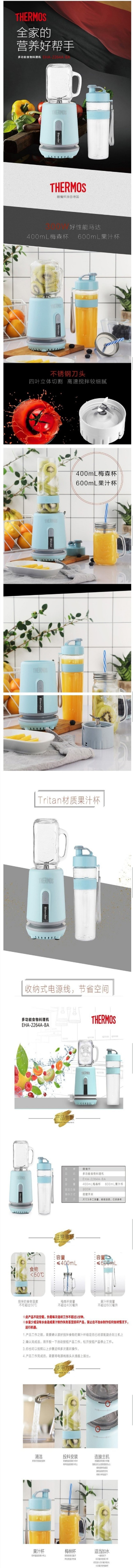 膳魔师 THERMOS 多功能食物料理机 EHA-2264A-BA