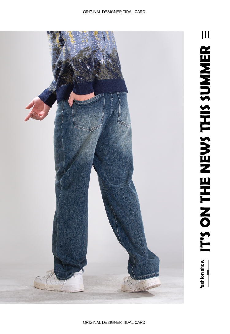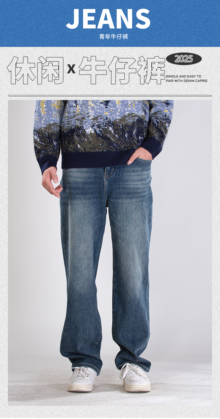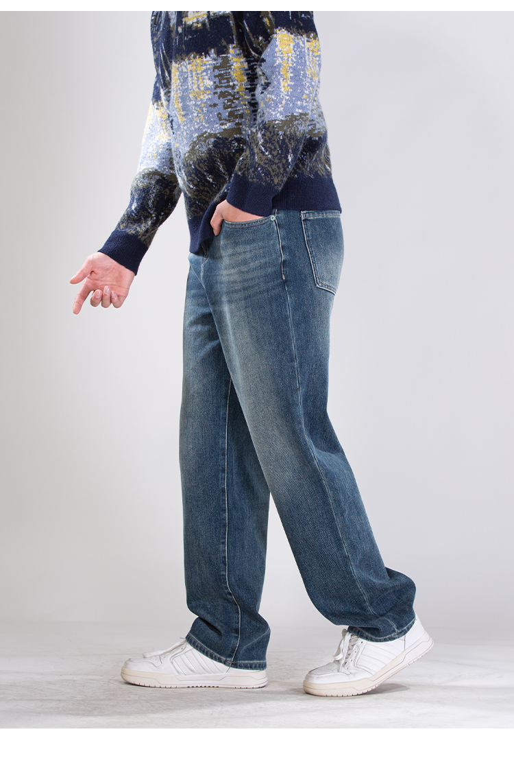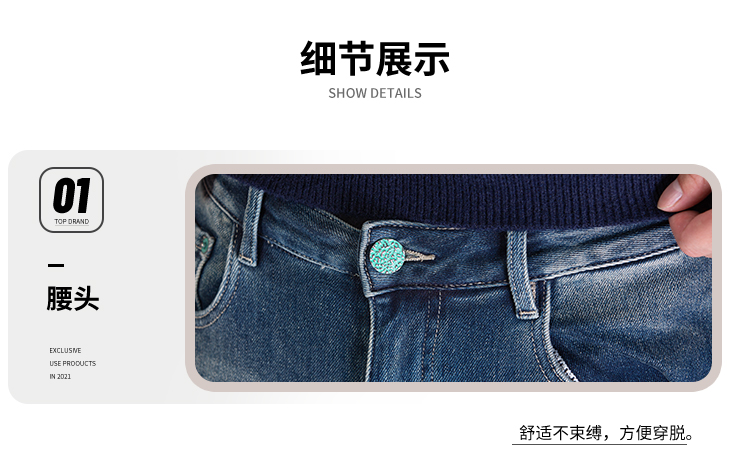 DRONKOO 2025 正常腰绿色钉扣四面弹一体长绒厚牛仔长裤