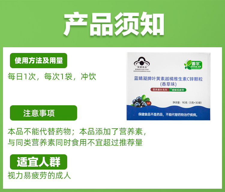 善尔护视力眼睛越橘叶黄素维生素C锌颗粒(香草味)营养素 30袋/盒 26年11月到期