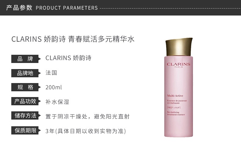 【香港直邮】【新旧版随机】CLARINS/娇韵诗 青春赋活分龄精华水 少女粉水 200ML
