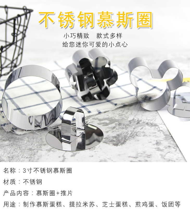 慕斯蛋糕模具 (带推片压板)3寸小慕斯圈 不锈钢蛋糕模具 多款可选 DIY烘焙工具
