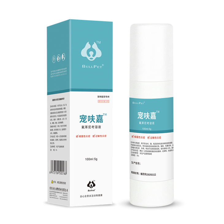 布尔宠呋嘉100ml氟苯尼考溶液,2027年7月22日到期。用于防治犬、猫、兔及其他毛皮动物因皮肤细菌、廯菌、毛囊虫感染以及过敏源所致的一系列皮肤疾病。