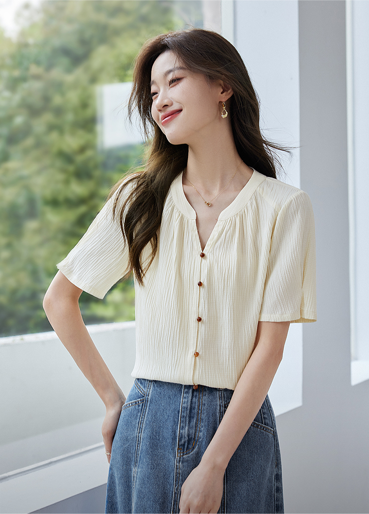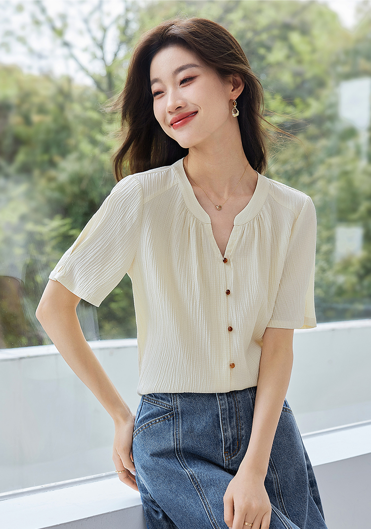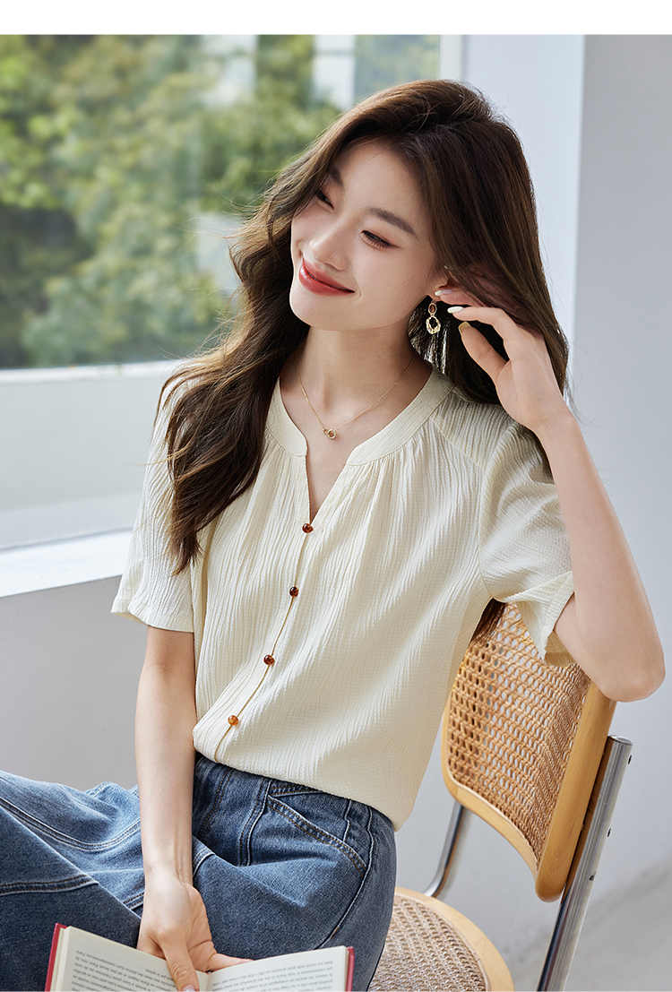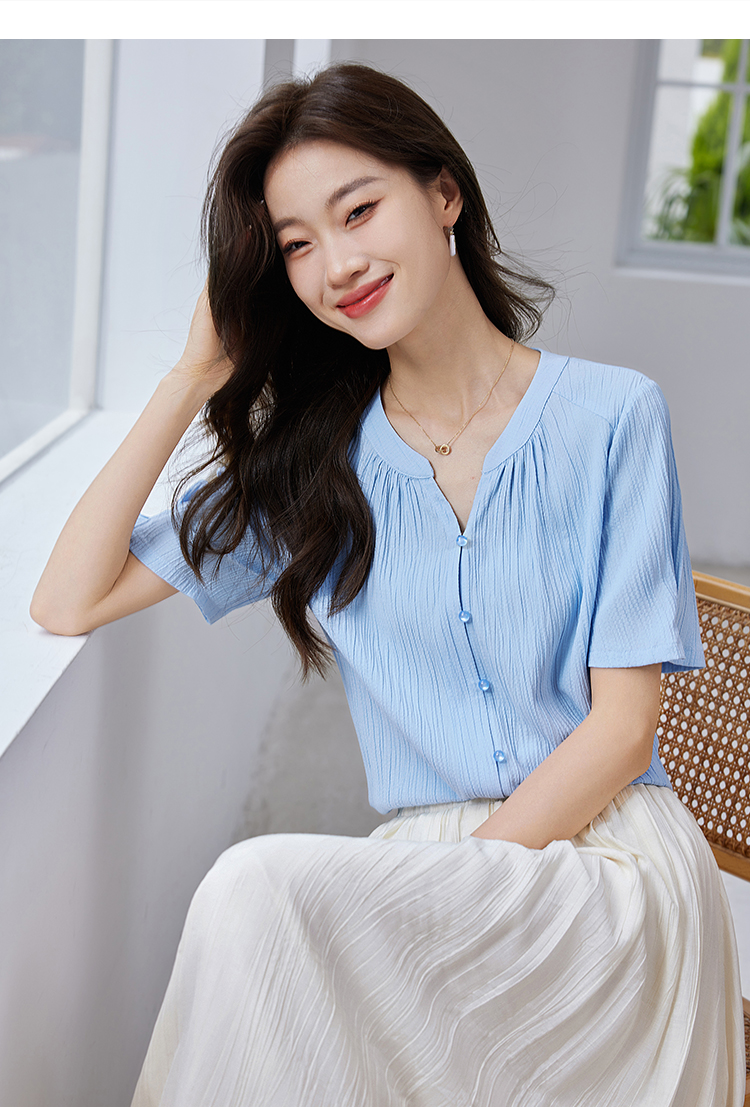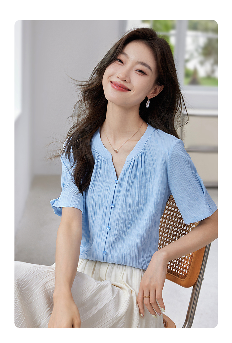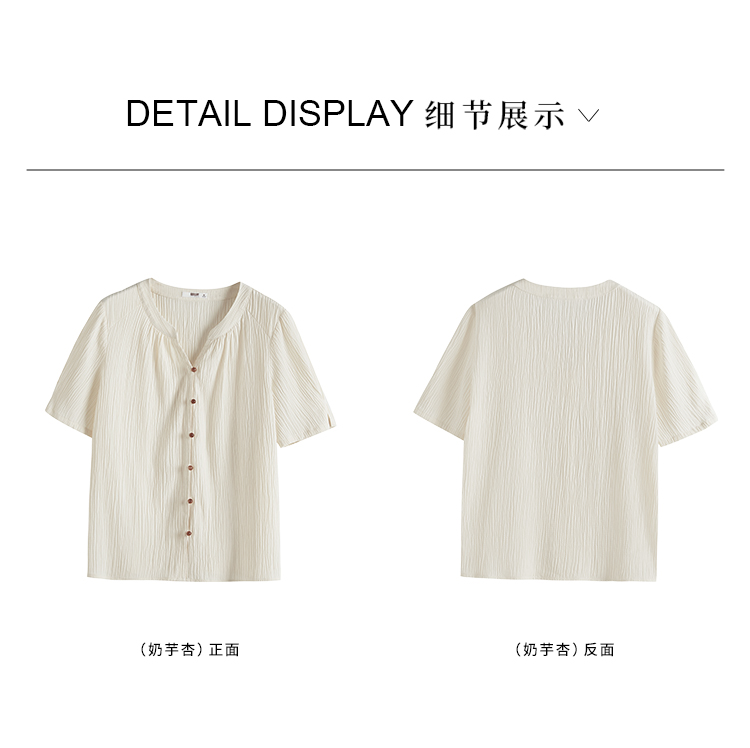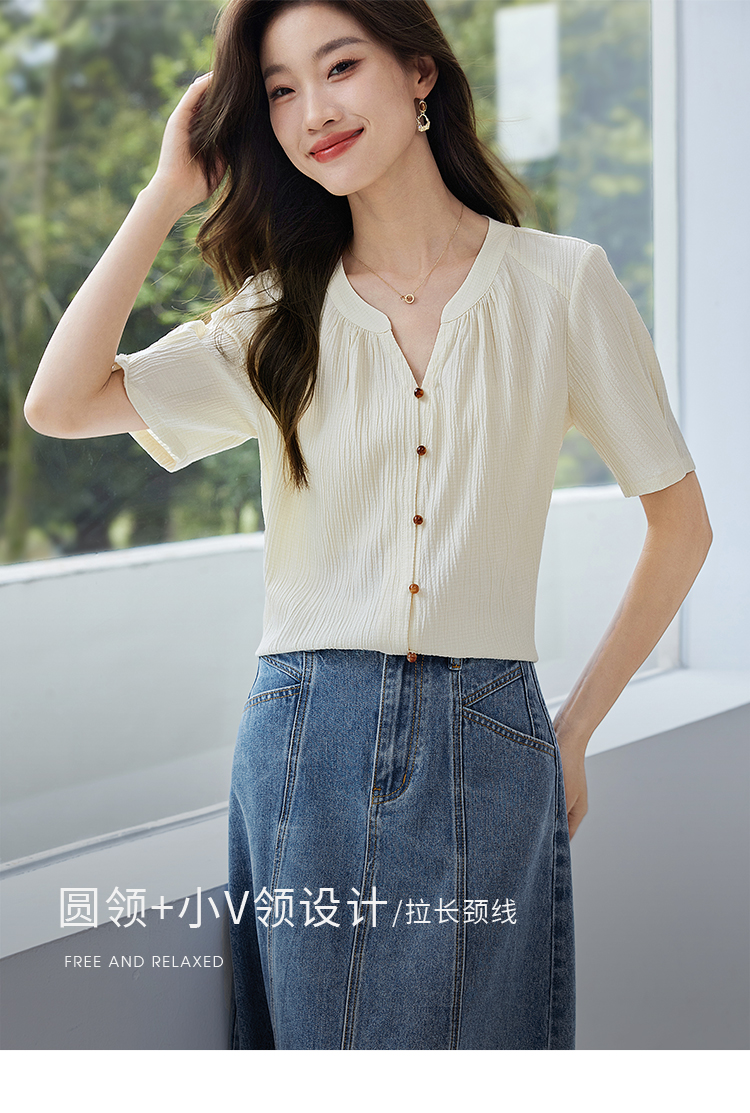 【专属特价】熙世界褶皱肌理感雪纺衬衫女夏2025新款优雅短袖小衫法式上衣