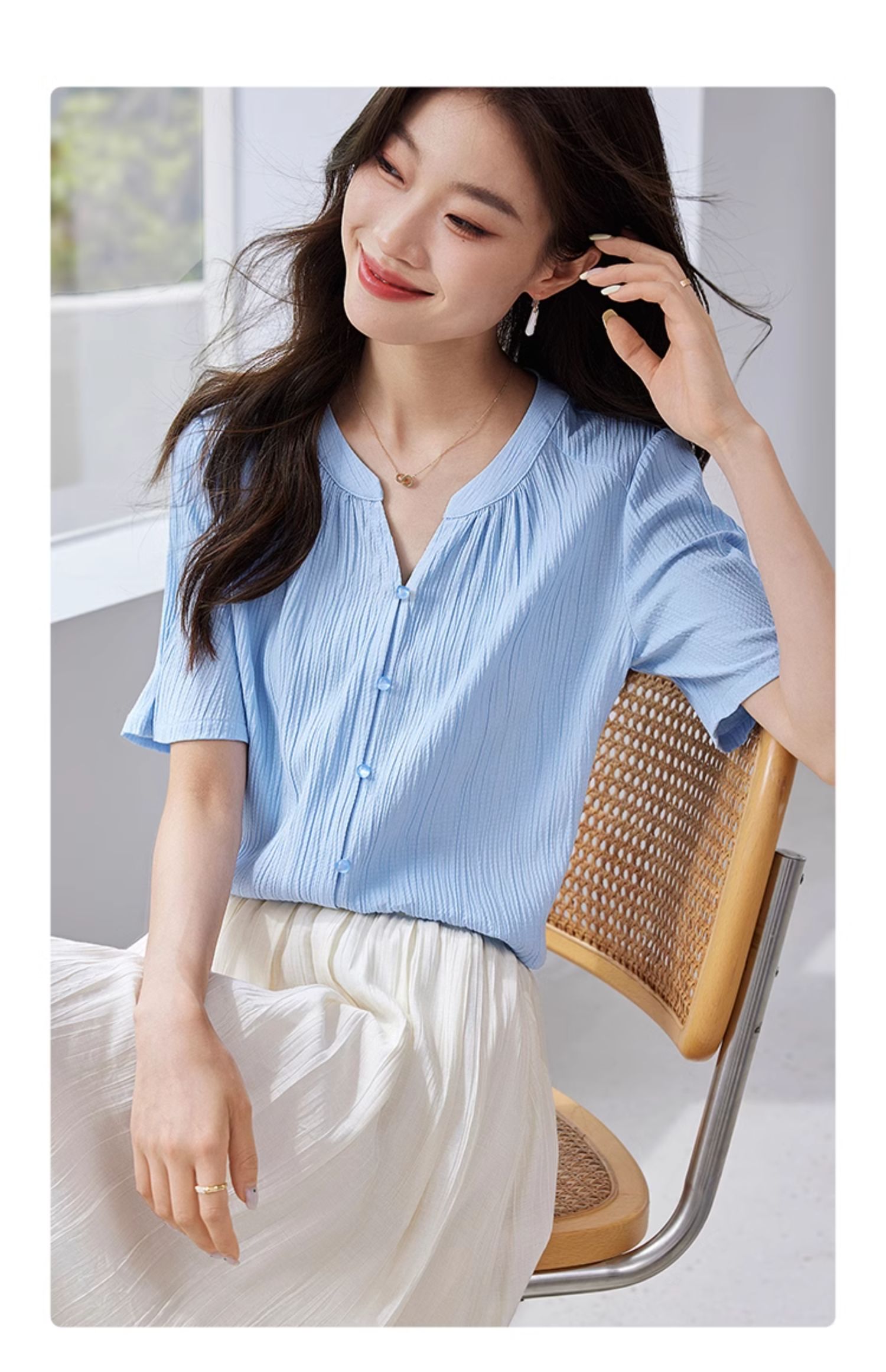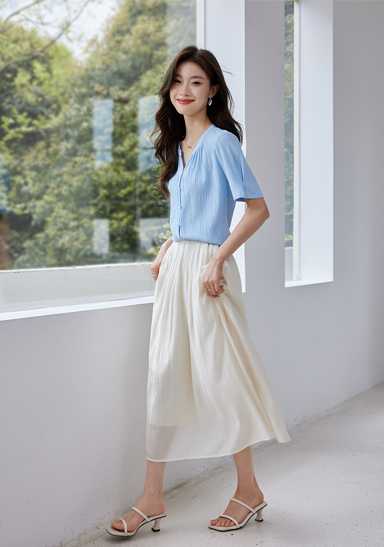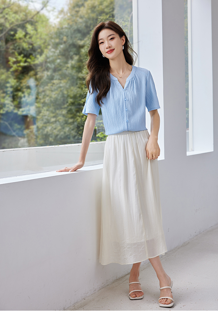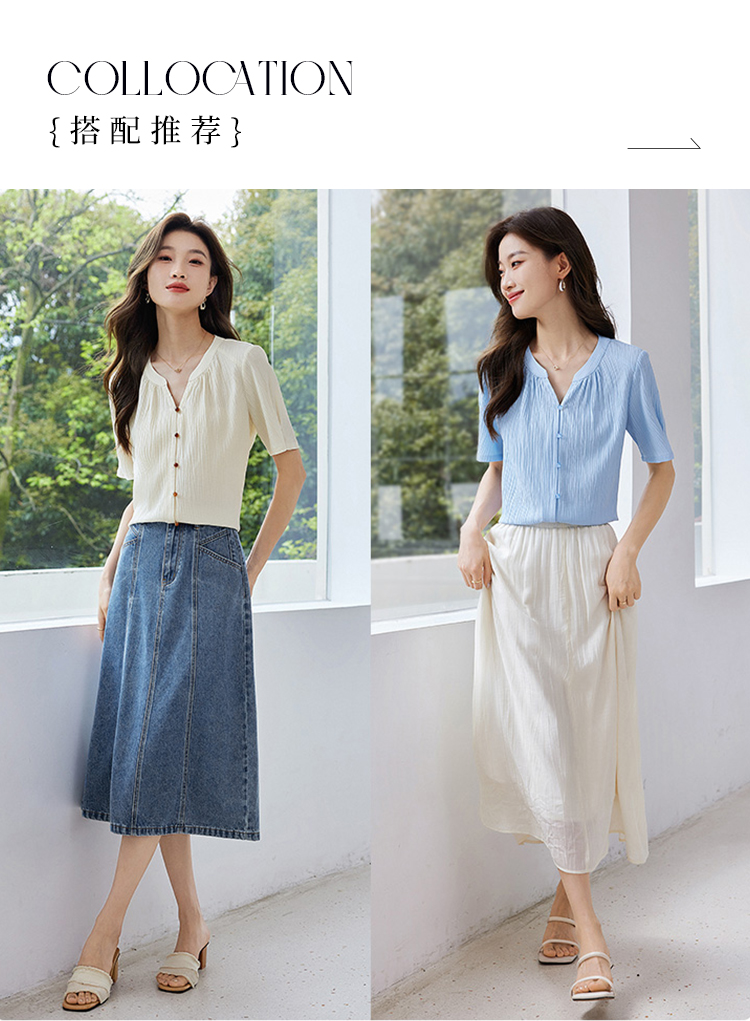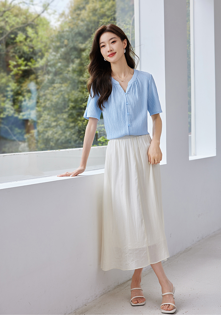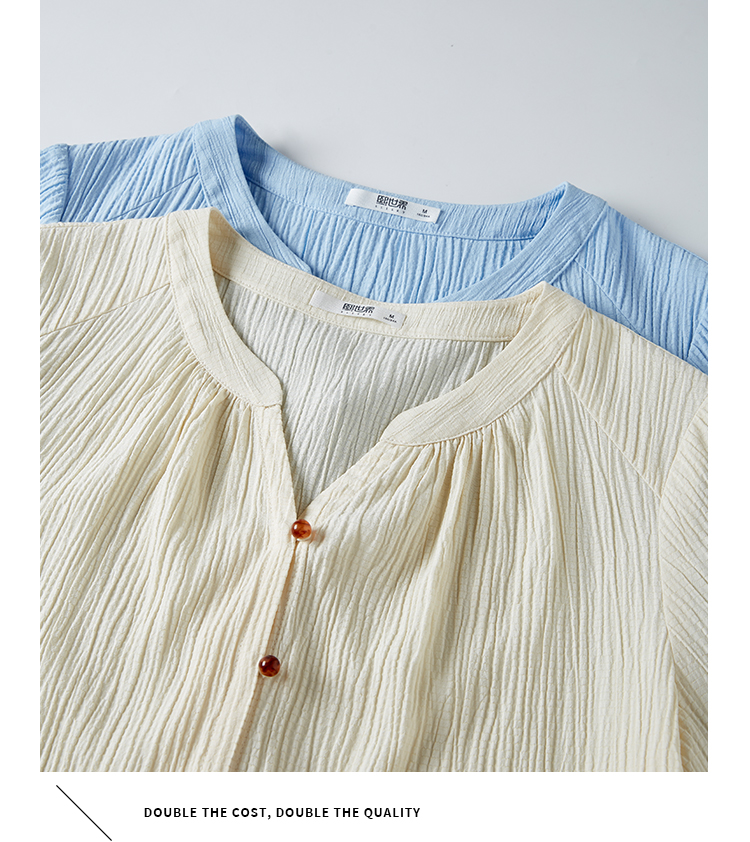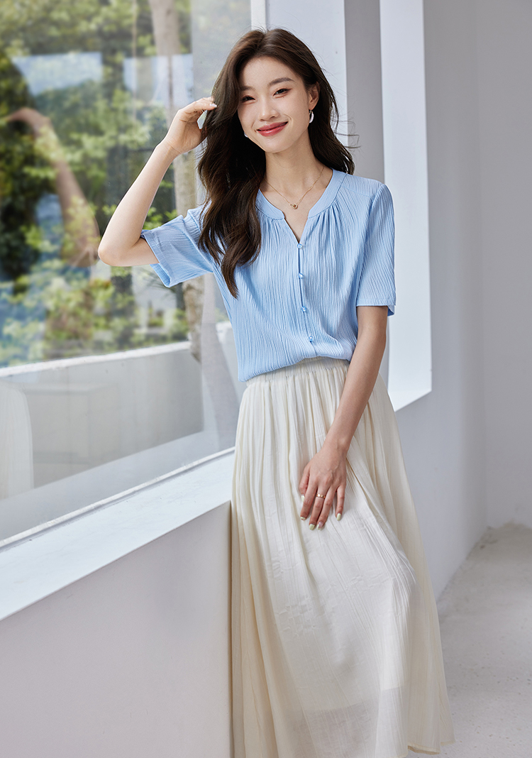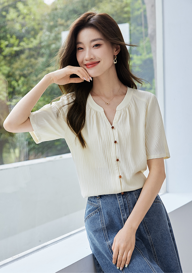 【专属特价】熙世界褶皱肌理感雪纺衬衫女夏2025新款优雅短袖小衫法式上衣