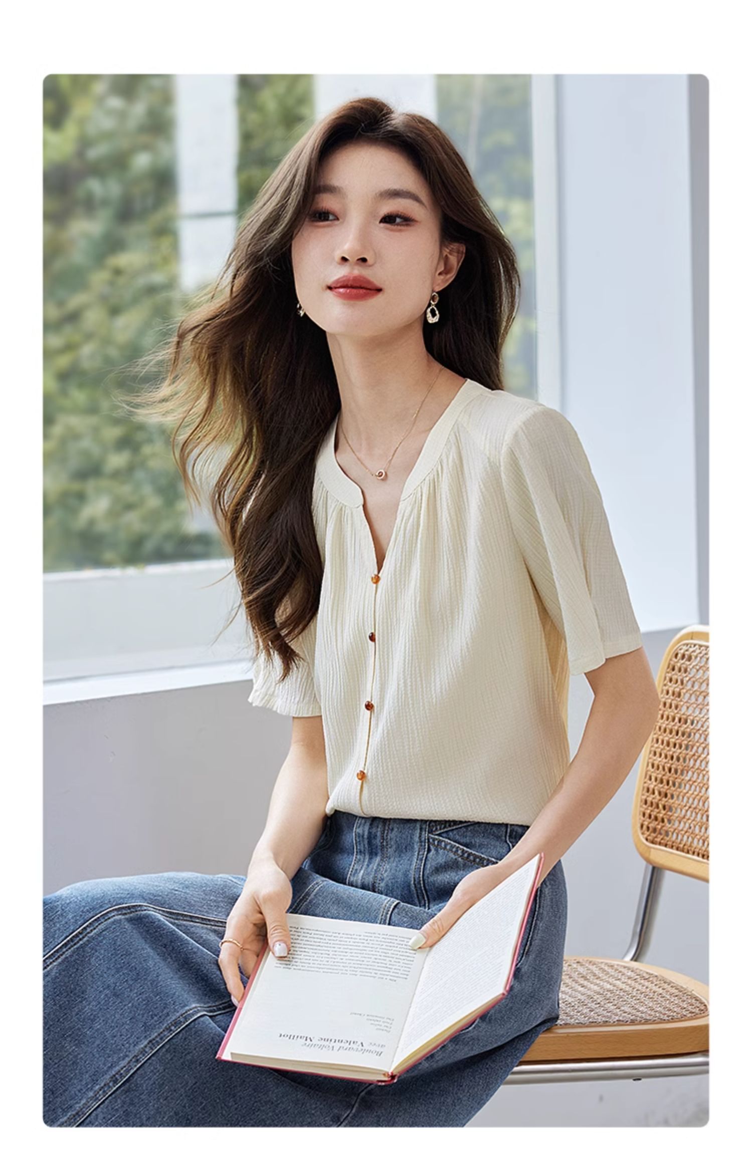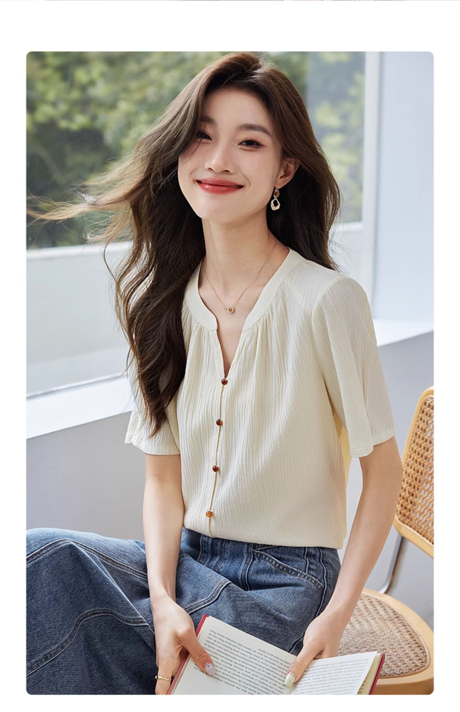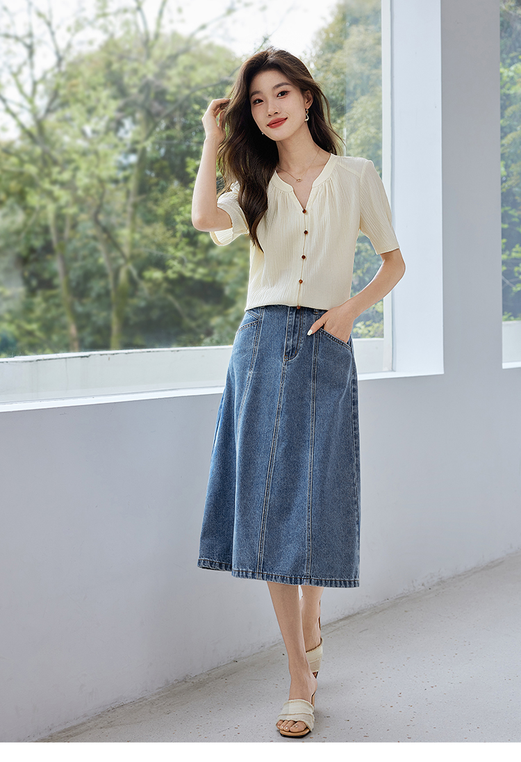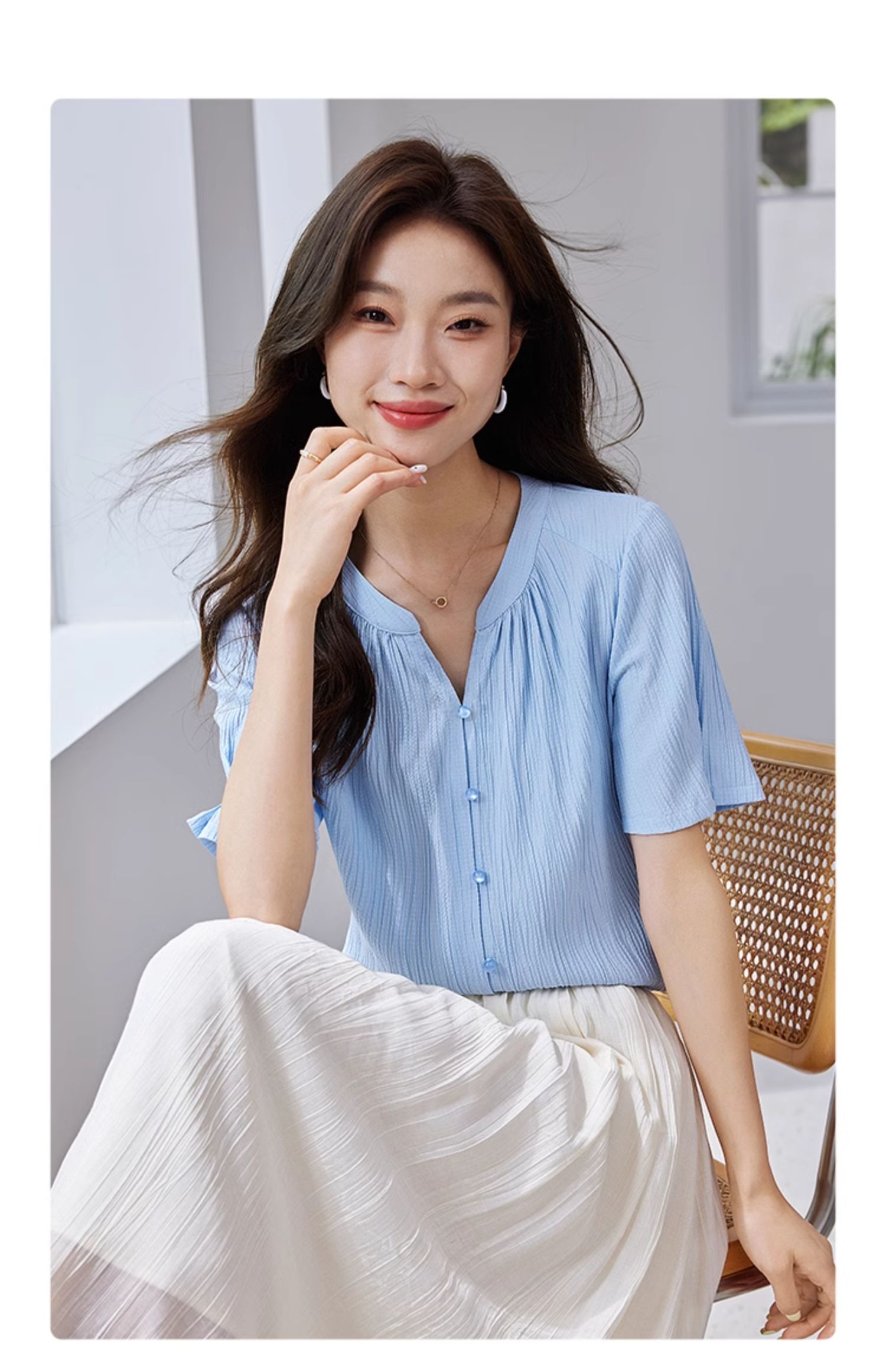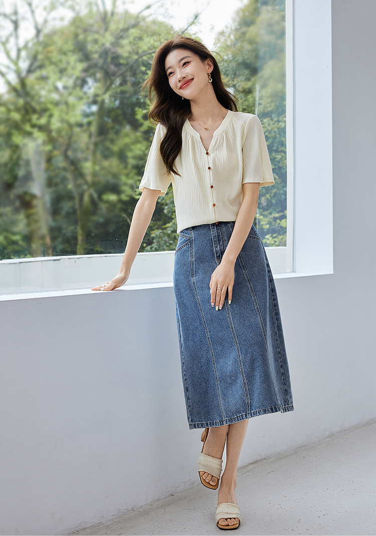 【专属特价】熙世界褶皱肌理感雪纺衬衫女夏2025新款优雅短袖小衫法式上衣