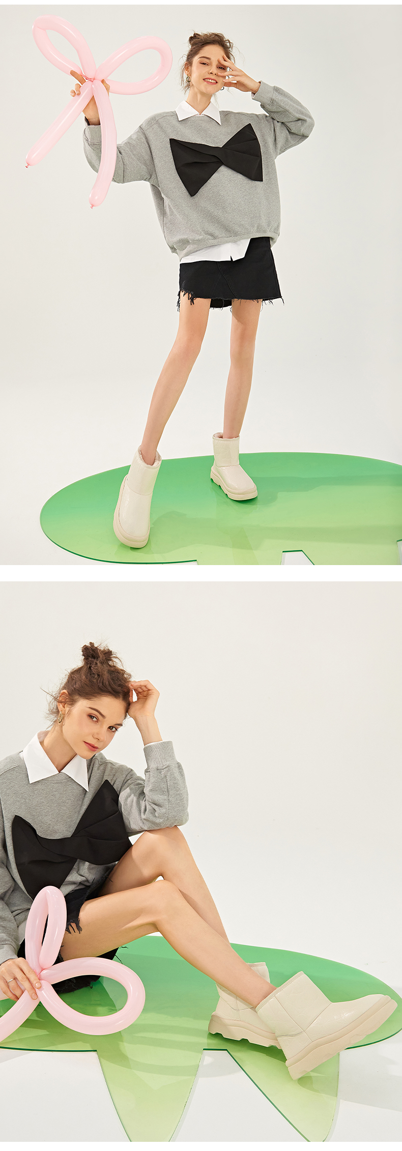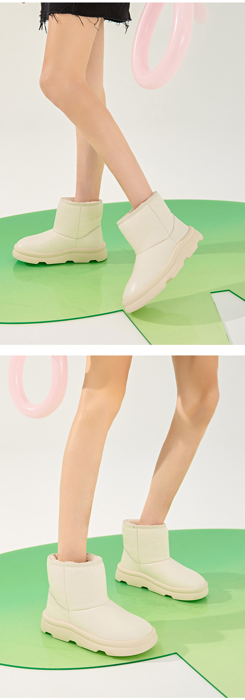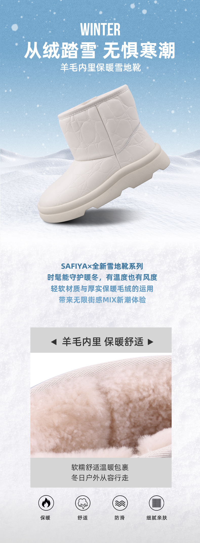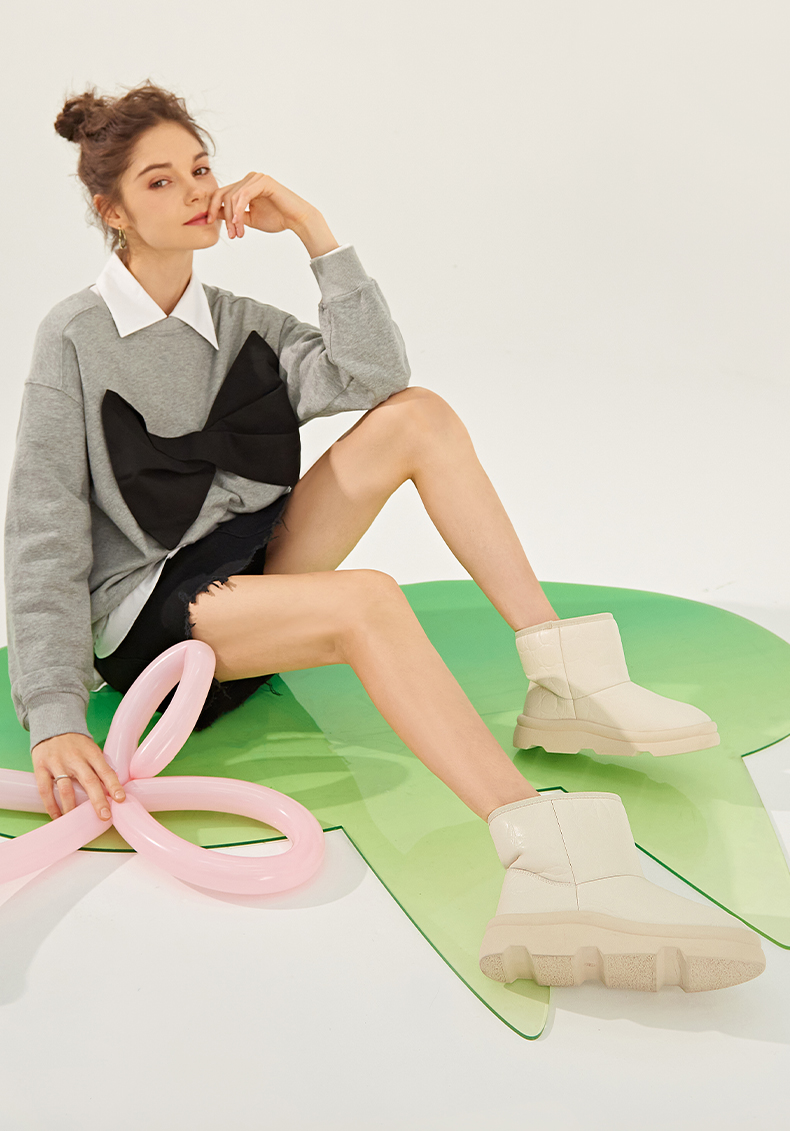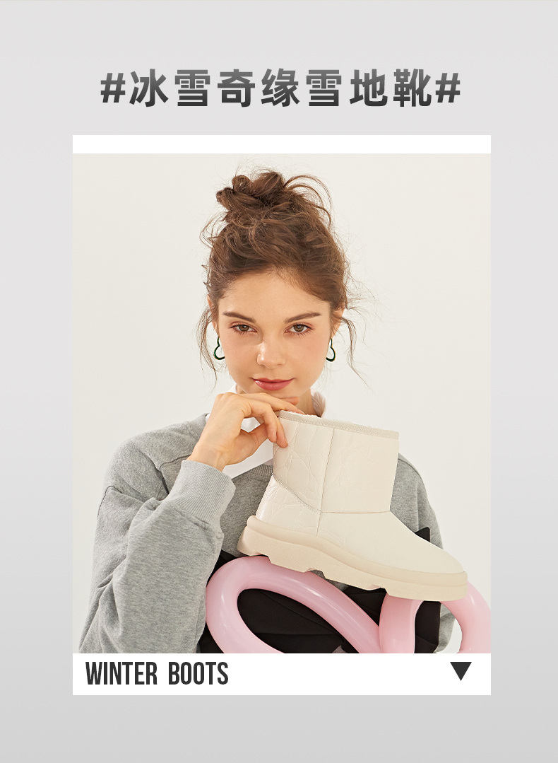 【春节不打烊】Safiya/索菲娅 新款加绒短筒靴2022冬季新款保暖羊毛加厚防滑雪地靴女 SF2411A057
