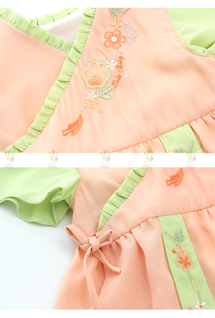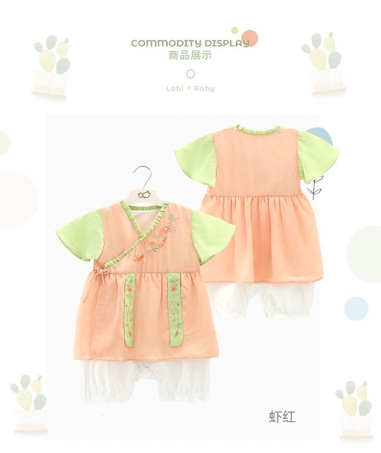 拉比-童衣类(夏)F2密语国风连体短袖衣虾红