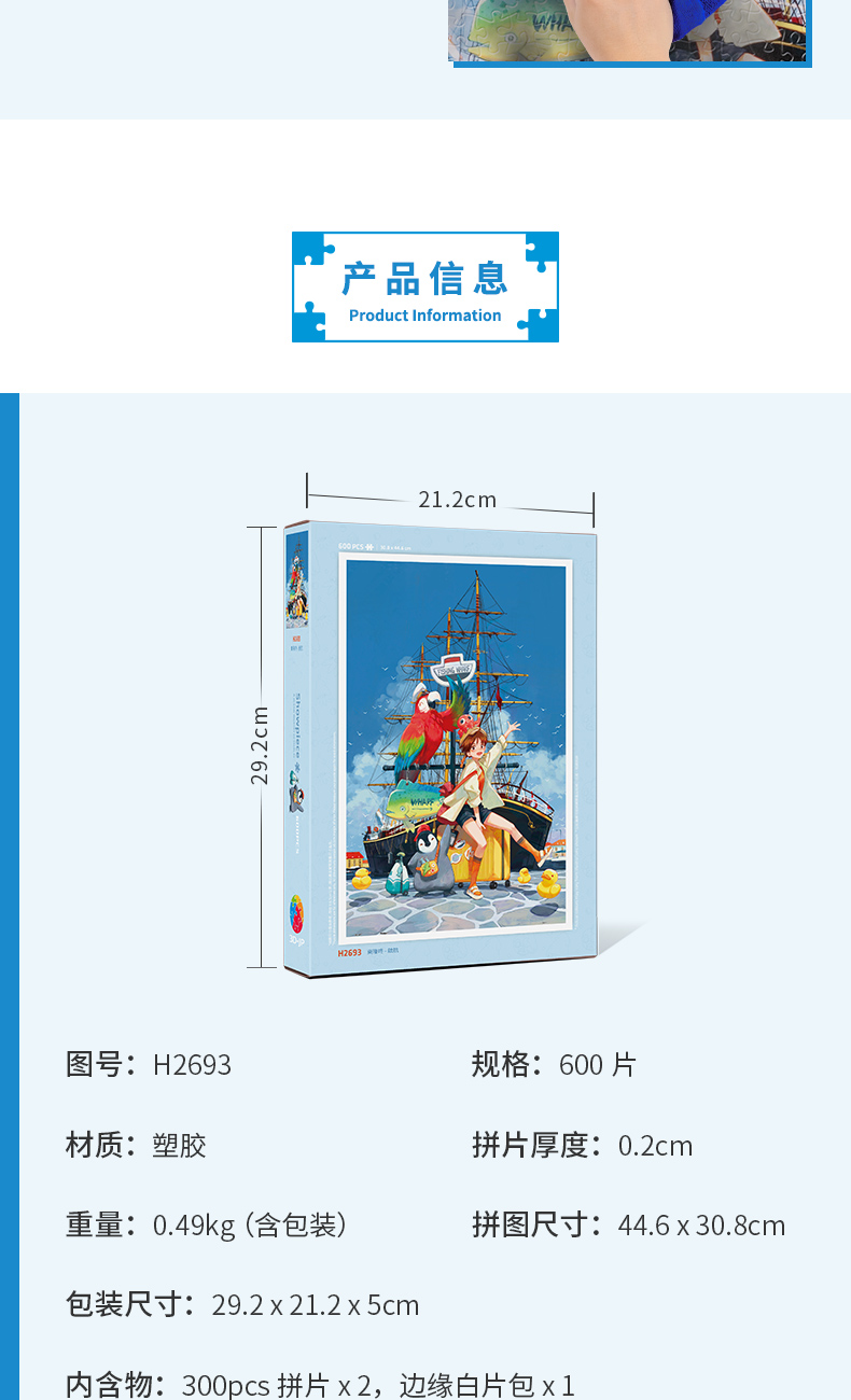 【折扣商品 不退不换】600片 平面拼图 塑料拼图 H2693 东隆咚-启航