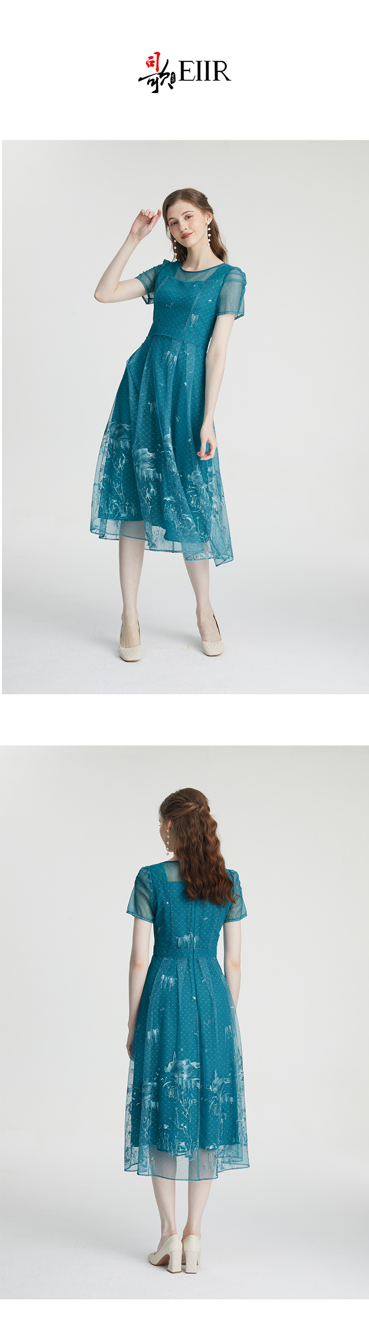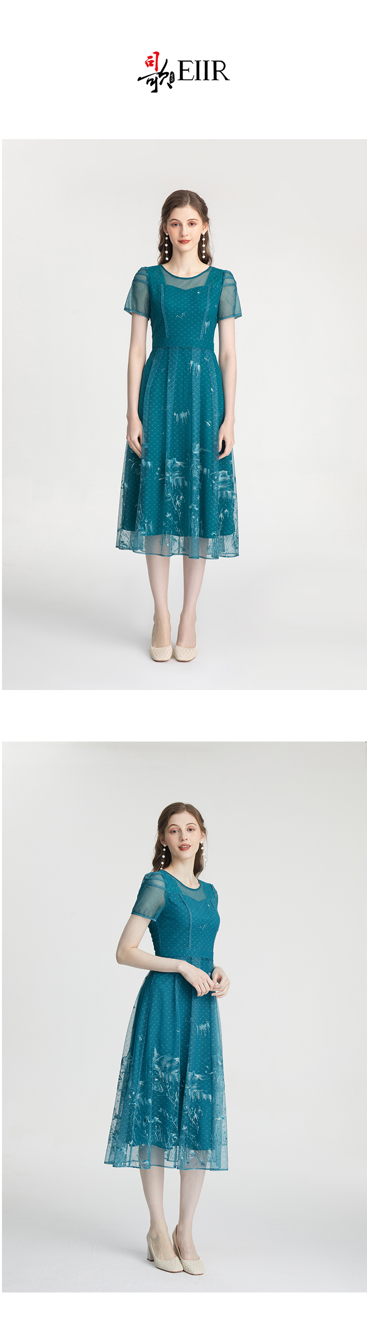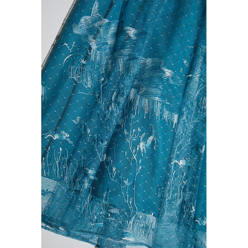 司歌网纱绣花短袖连衣裙收腰A911067X